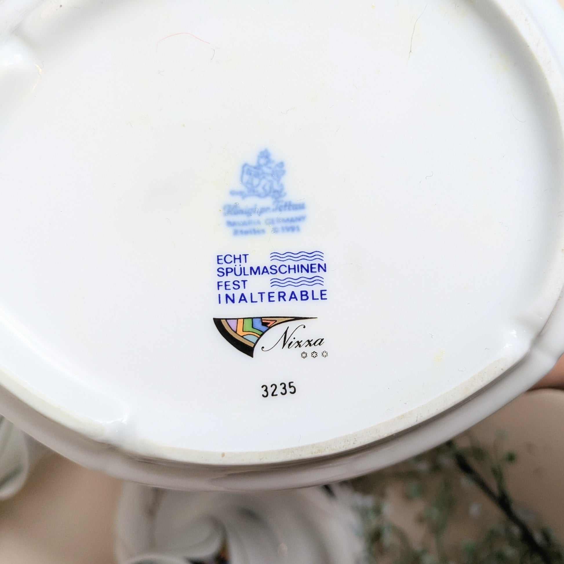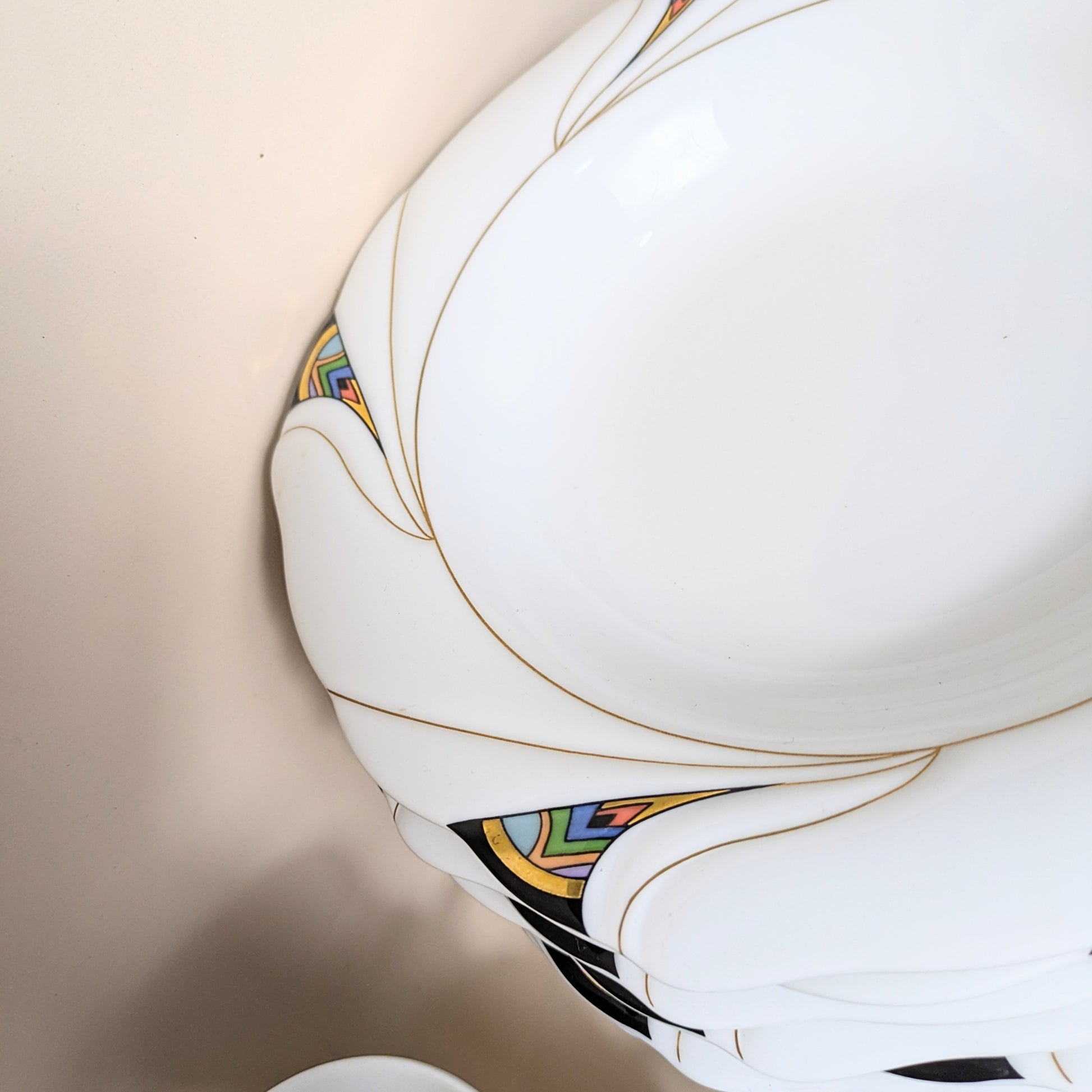✅ 6 assiettes creuses, 6 tasses, 6 soucoupes, 7 assiettes à gâteau, 1 pot à lait, 1 sucrier, 1 cafetière, 1 plat de service