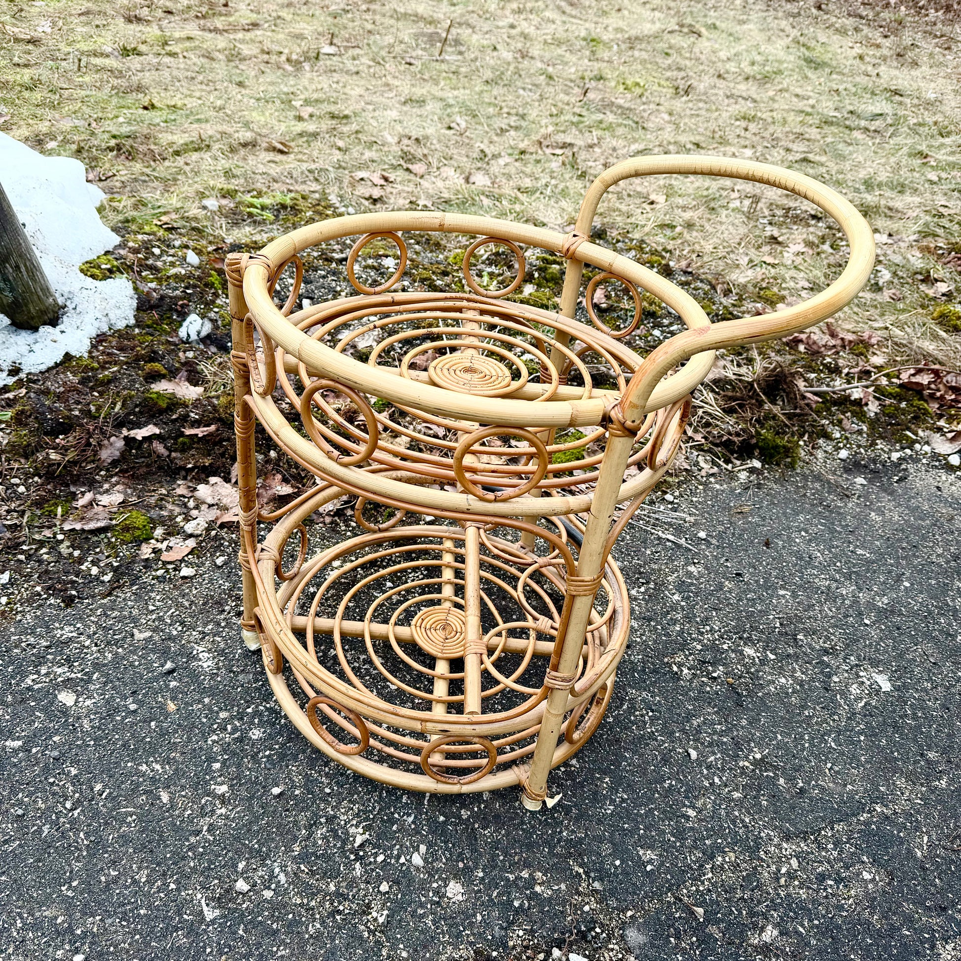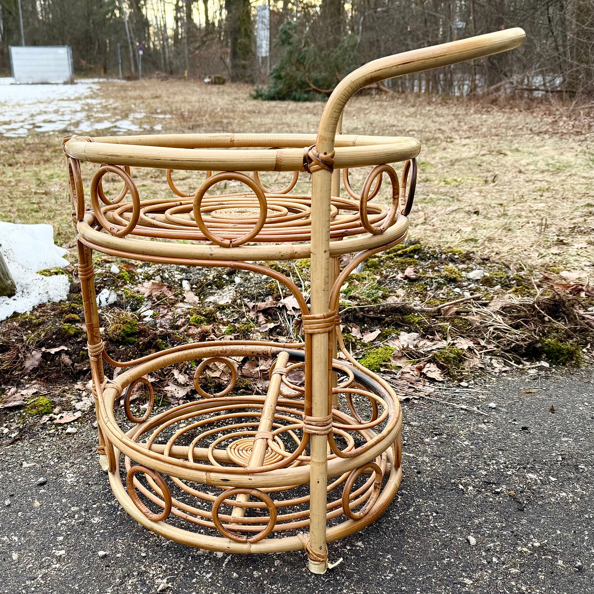 Du bist Liebhaber einzigartiger Mid Century Einrichtung und außergewöhnlicher Vintage Möbel? Dann ist dieser Bambus Barwagen genau das Richtige für dich! Das Kleinmöbel ist perfekt für die Aufbewahrung deiner Getränke oder auch für deine Pflanzen, Bücher, Vasen und andere Dekoration. Also, worauf wartest du noch? Hol dir den Servierwagen so lange du noch kannst!