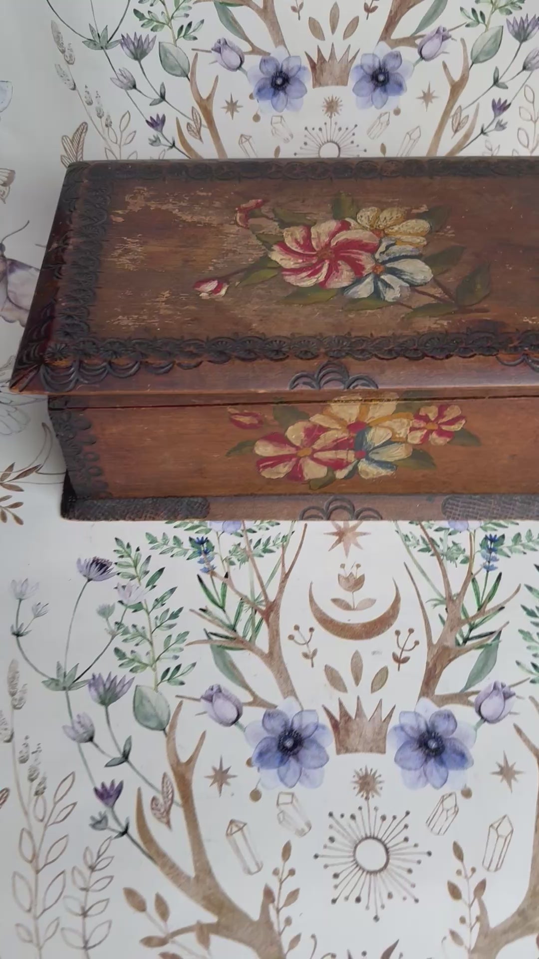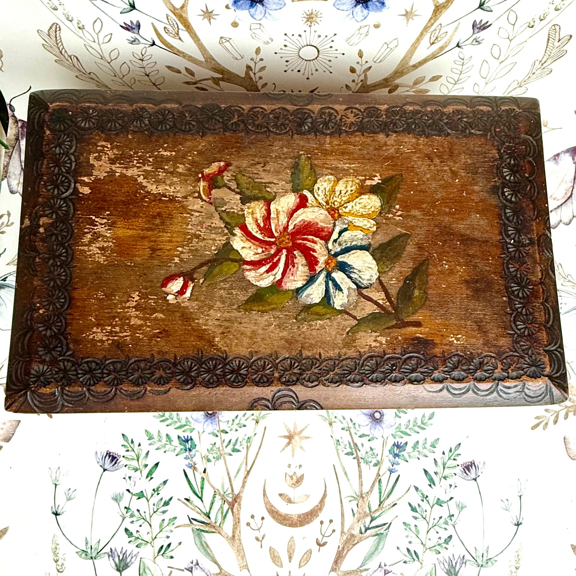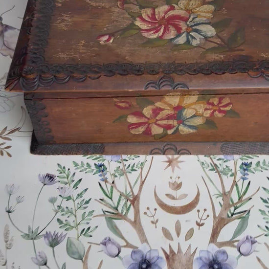 Bemalte Holzbox antik Blumen