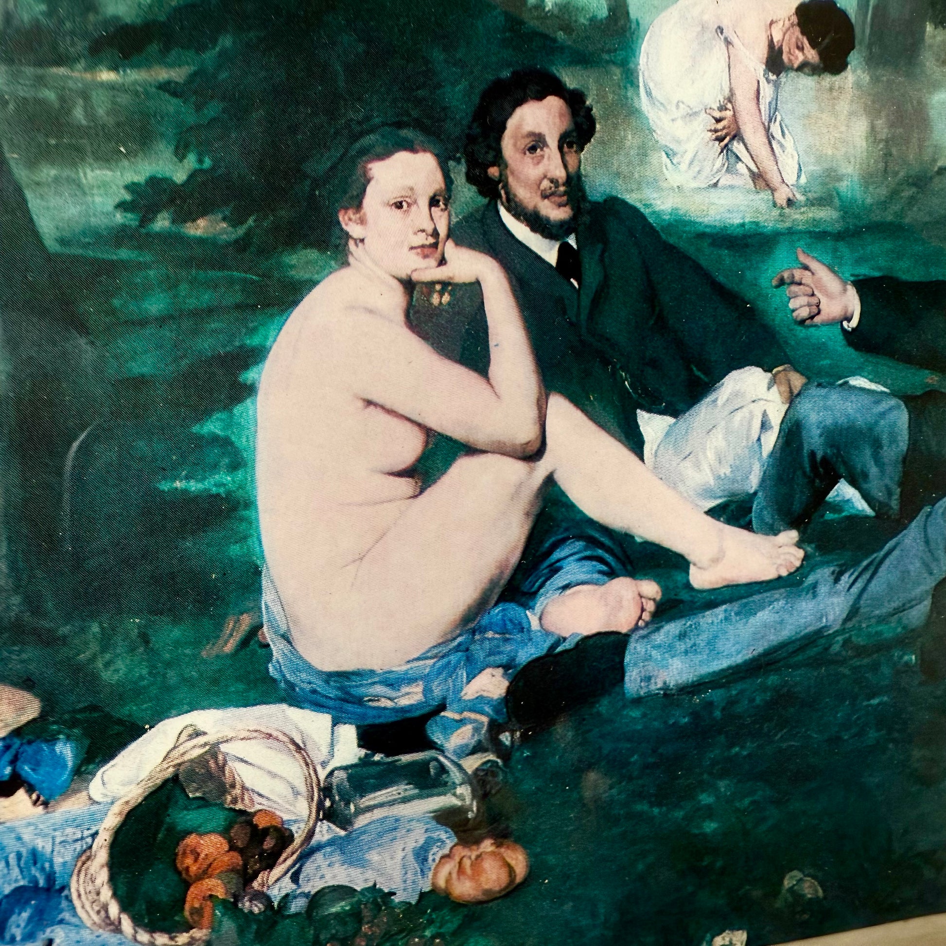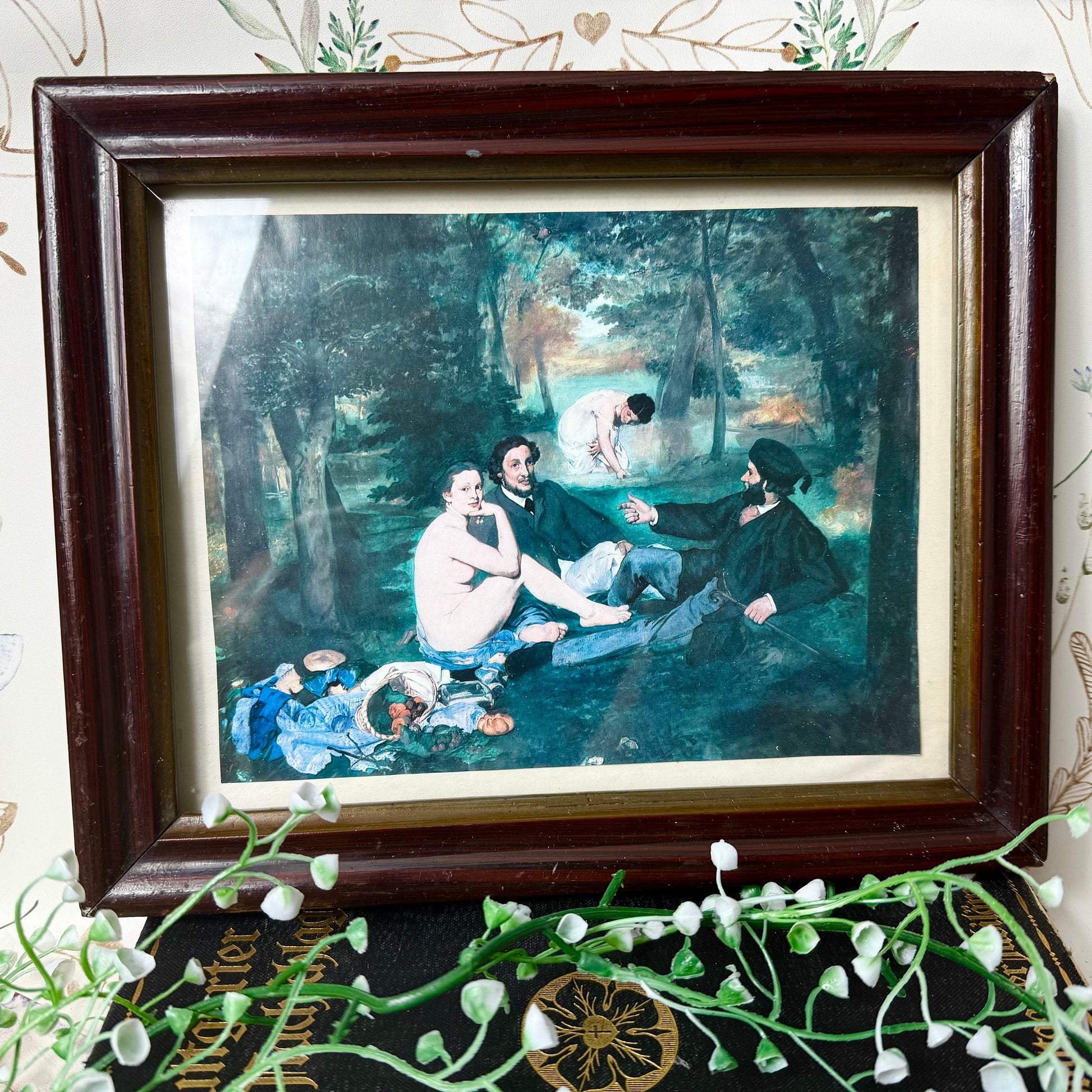 Du liebst Kunst und einzigartige Vintage Stücke? Dann ist dieses impressionistische Wandbild des genau das Richtige für dich! Das Bild zeigt das bekannte Gemälde „Das Frühstück im Grünen“ von Edouard Manet und ist hier in einem Vintage Holzrahmen gerahmt. Also, worauf wartest du? Sichere dir diesen Klaasiker an Wanddeko, solange er noch da ist!