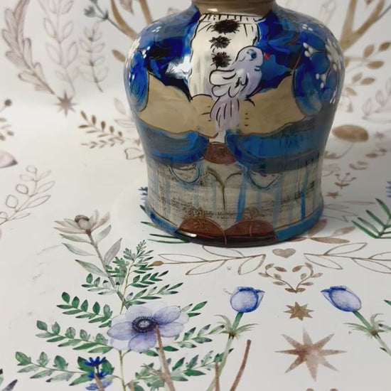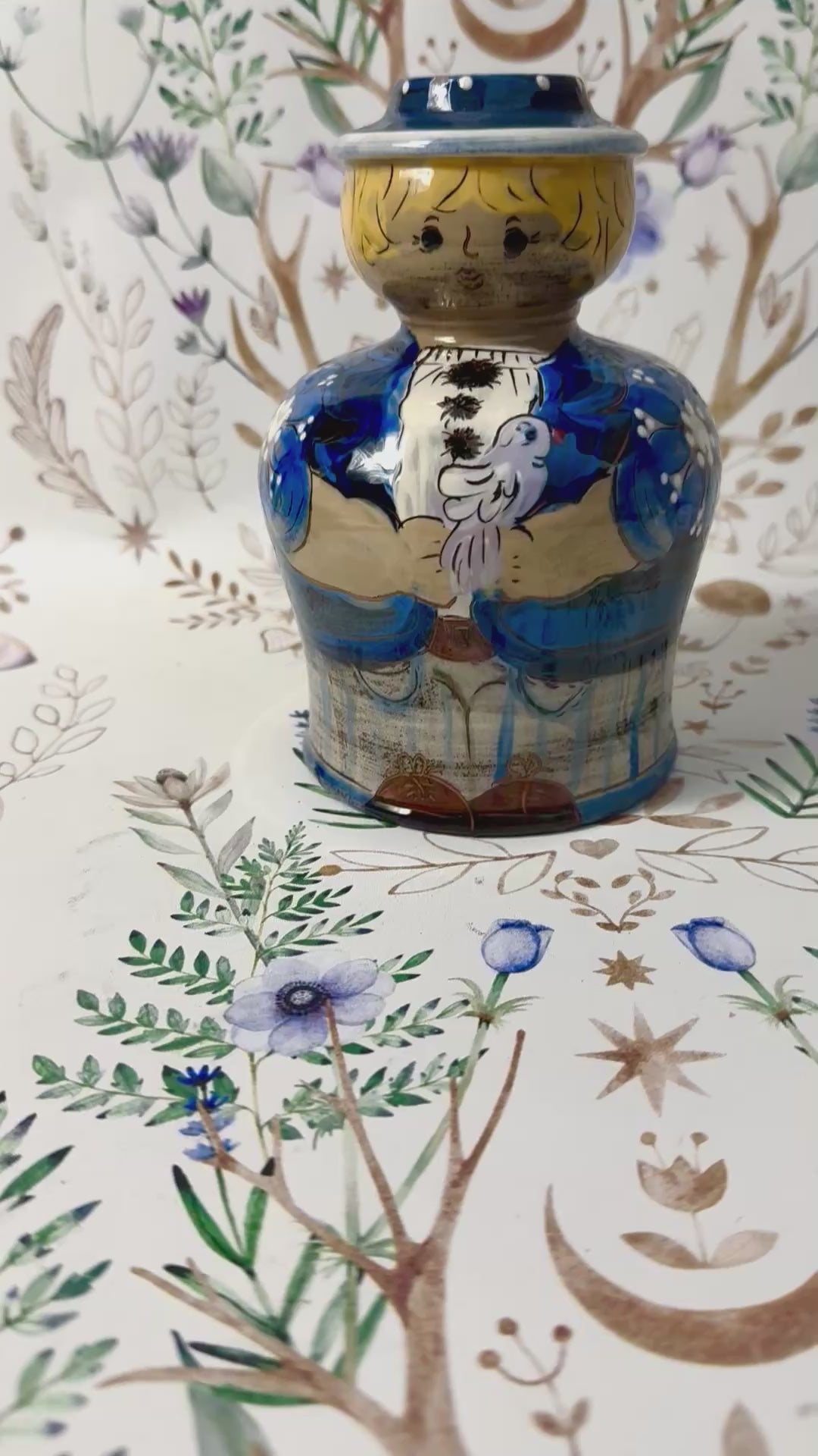 Handgemachtes Stövchen in Form eines kleinen süßes Männchens. Oben kann Duftöl gefüllt werden oder auch eine Stabkerze.