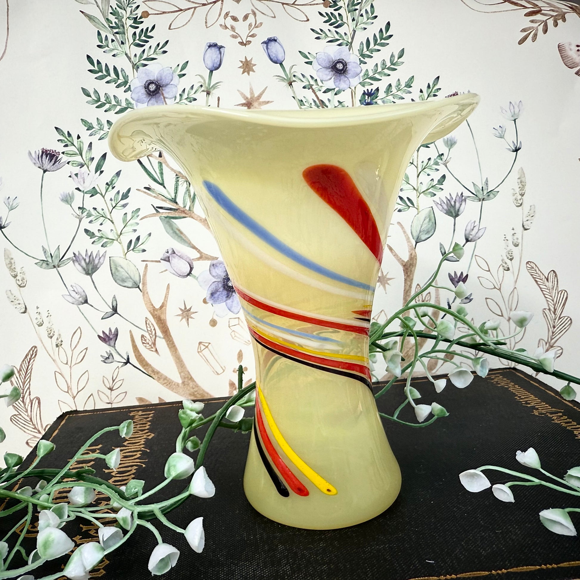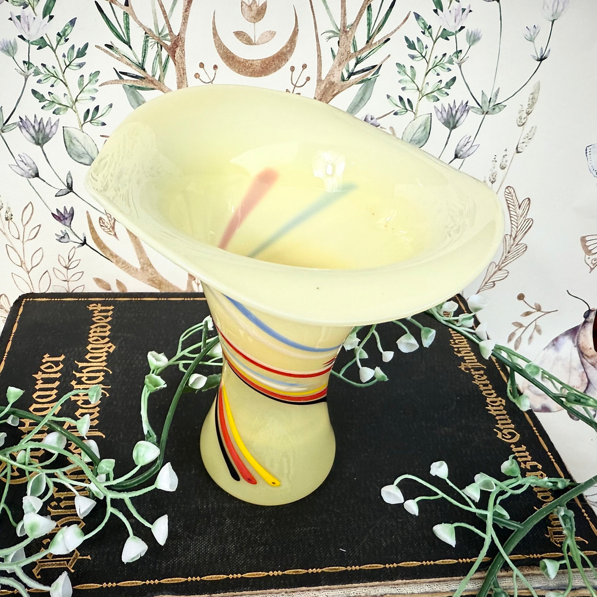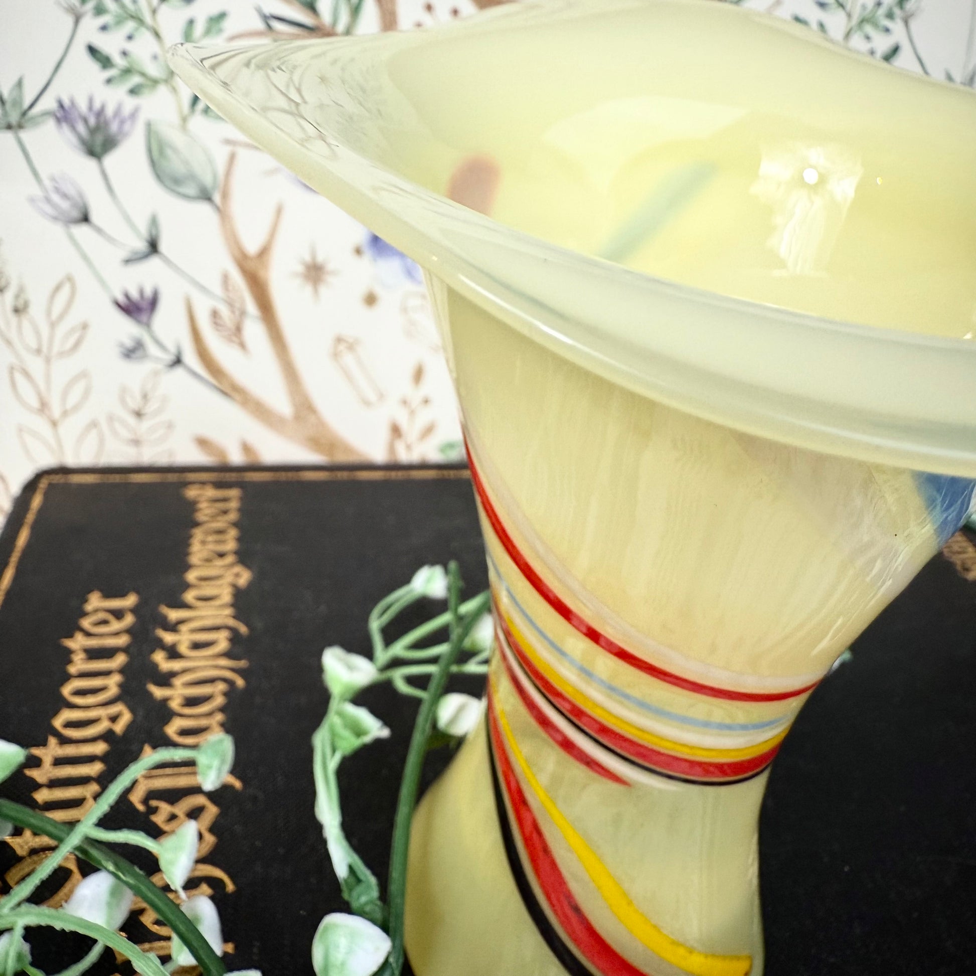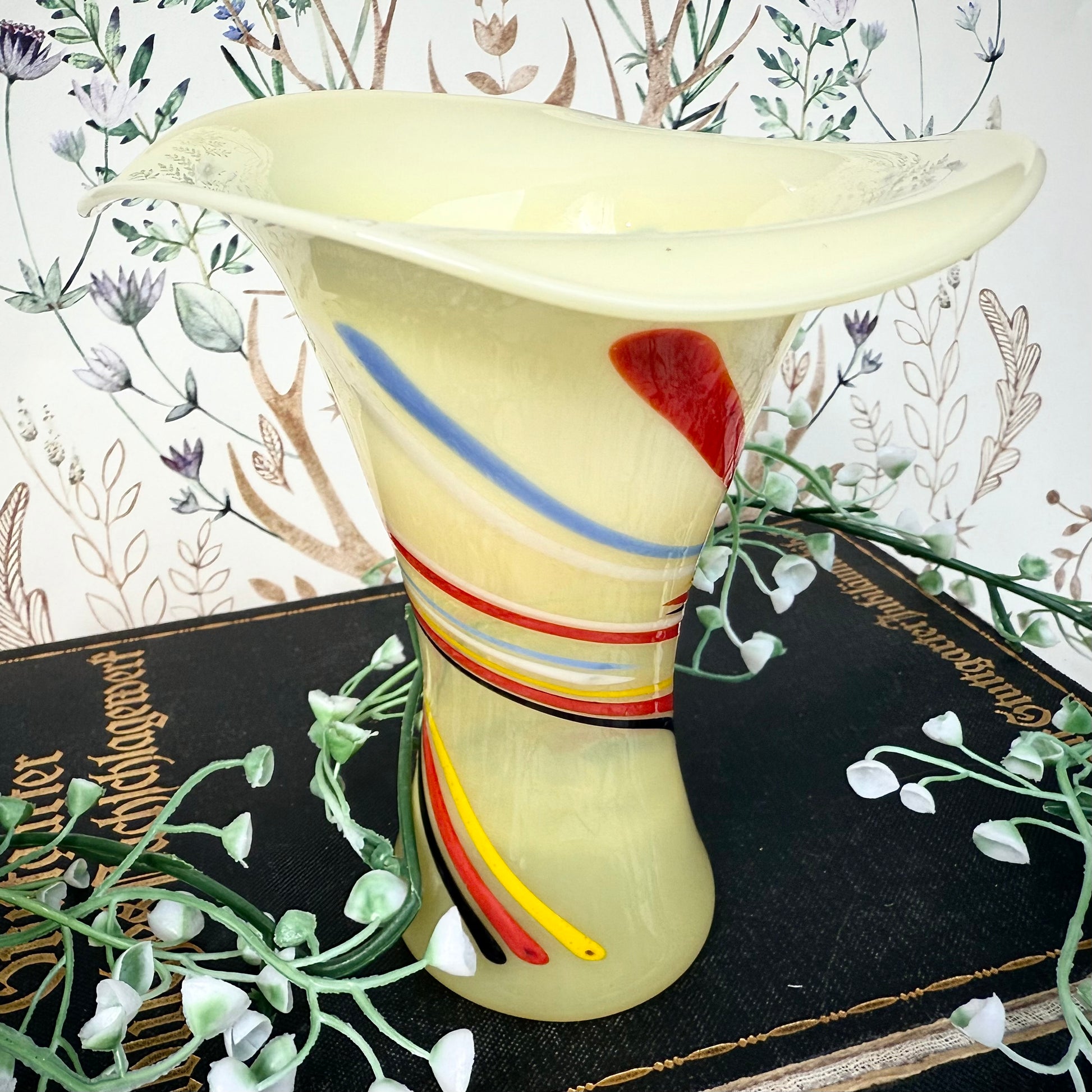 Du bist leidenschaftlicher Sammler antiker Unikate und wertvoller Vintage-Fundstücke? Dann ist diese farbenfrohe Glasvase genau das Richtige für dich! Die kunstvolle Vase in wundervollem Buttergelb ist ein echter Blickfang. Die verschlungene Form und ihre Farbkomposition machen sie zu einem optischen Highlight, das Sammlerherzen höher schlagen lässt. Perfekt als Ausstellungsstück für die Vitrine oder auch als Tischdeko in Ess- oder Wohnzimmer. Also, worauf wartest du noch? Hol sie dir so lange du noch kannst!
