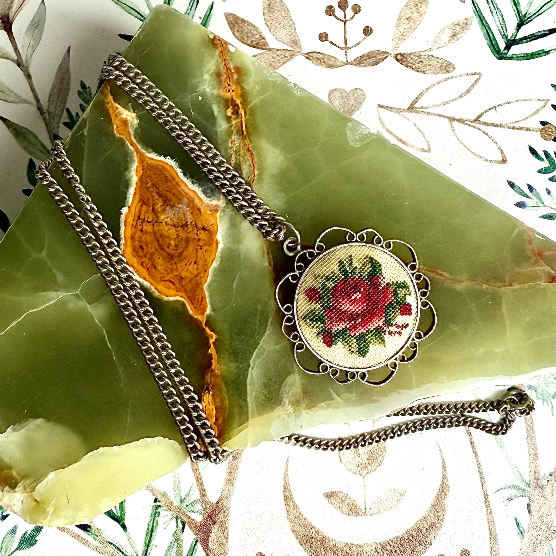 Du magst besonderen Vintage Schmuck, der mit zeitloser Eleganz überzeugt? Dann ist diese Halskette mit gestickter Rose genau das Richtige für dich! Durch die vielen Details des Anhängers ist sie sowohl für den Alltag als auch für besondere Anlässe perfekt geeignet Also, worauf wartest du noch? Hol sie dir so lange du noch kannst!