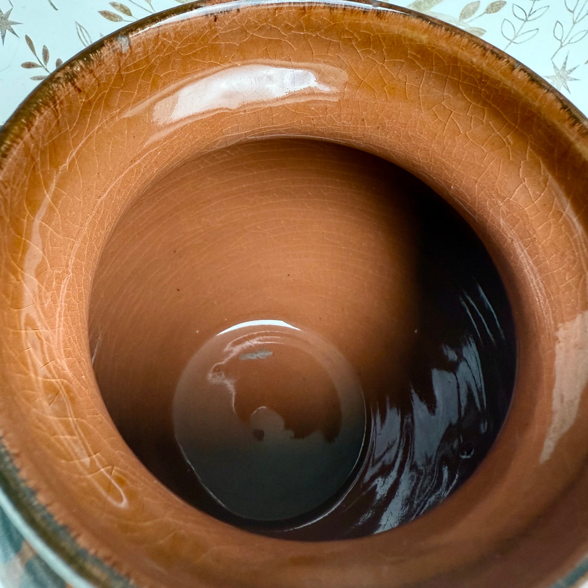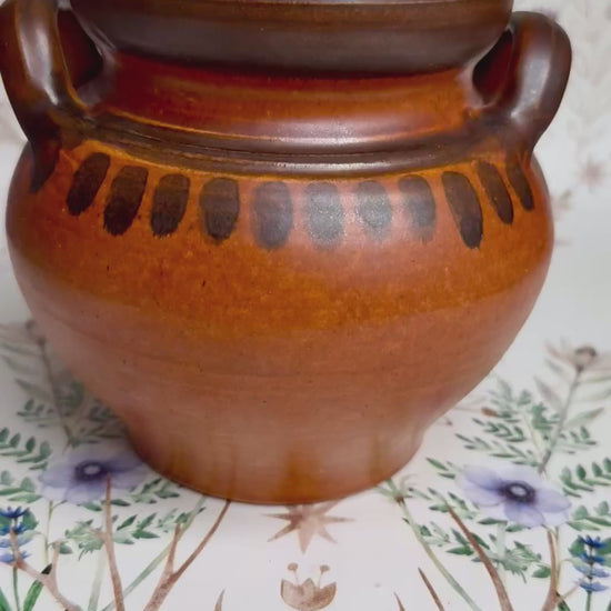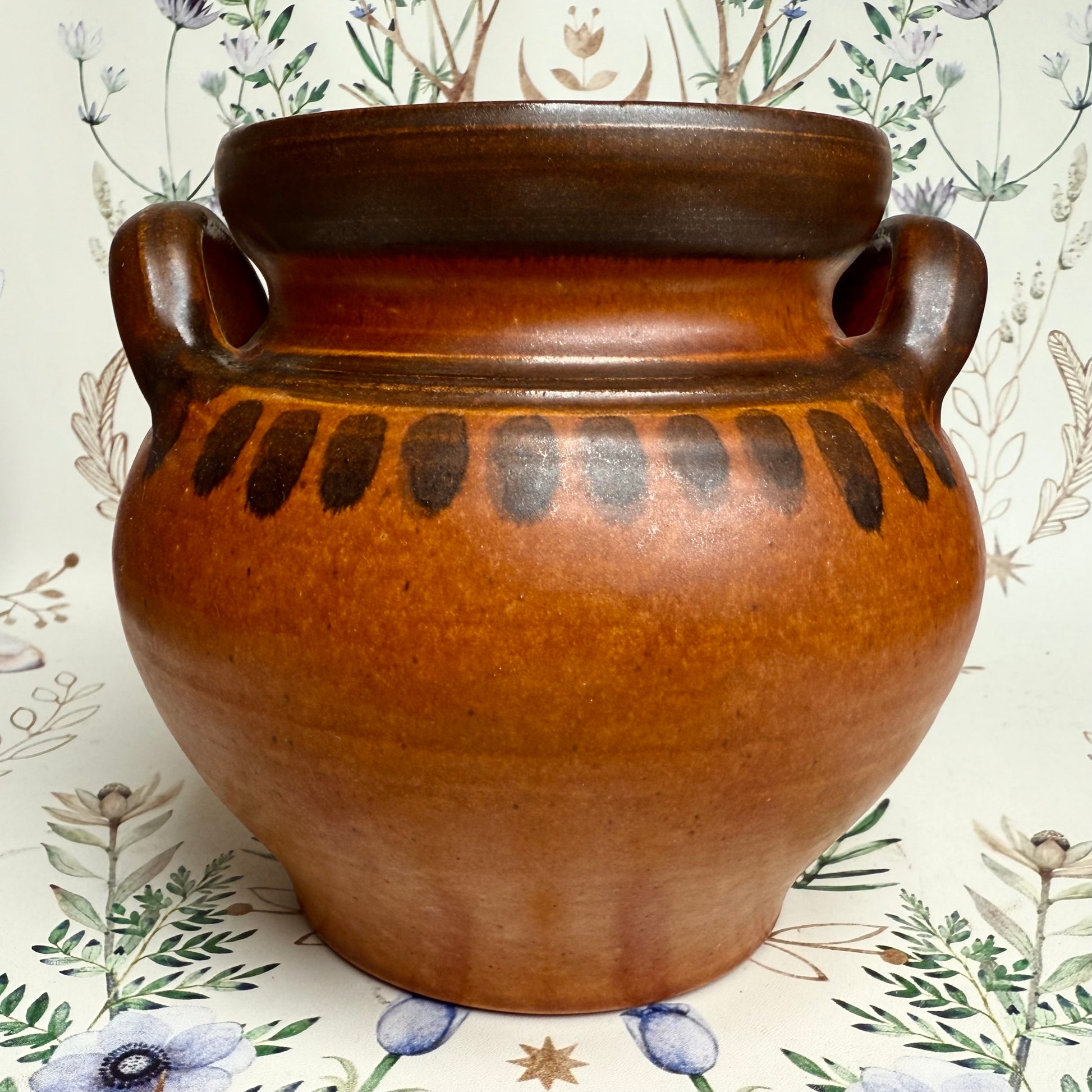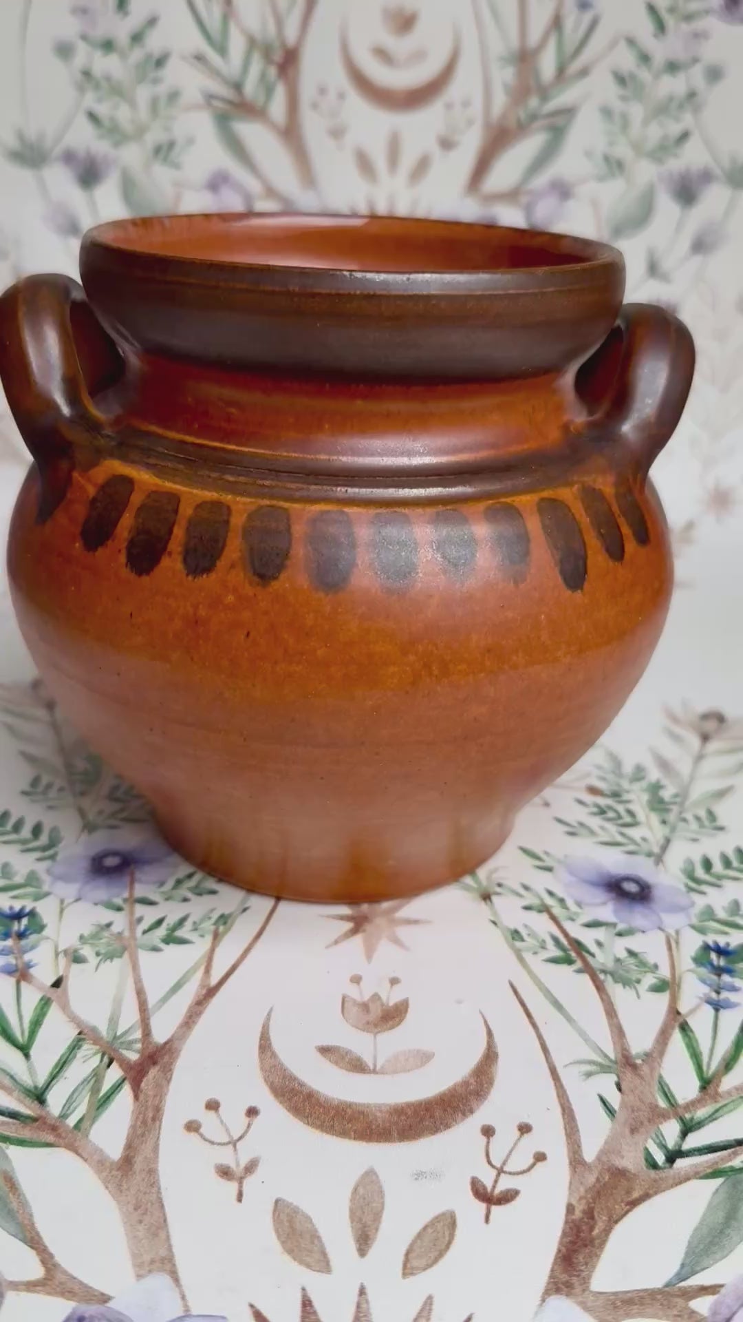 Du bist leidenschaftlicher Sammler antiker Unikate und wertvoller Vintage-Fundstücke? Dann ist diese handgemachte Keramikvase genau das Richtige für dich! Die Mid Century Vase in Terrakotta und Schwarz ist ein echter Blickfang und ein optisches Highlight, das Sammlerherzen höher schlagen lässt. Die handgetöpferte Vase in braun und schwarz ist perfekt als Ausstellungsstück für die Vitrine oder auch als besondere Tischdeko. Also, worauf wartest du noch? Hol dir die Henkelvase so lange du noch kannst!
