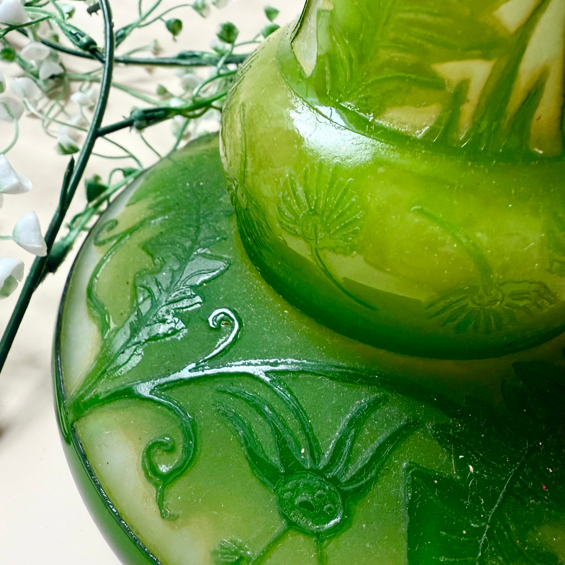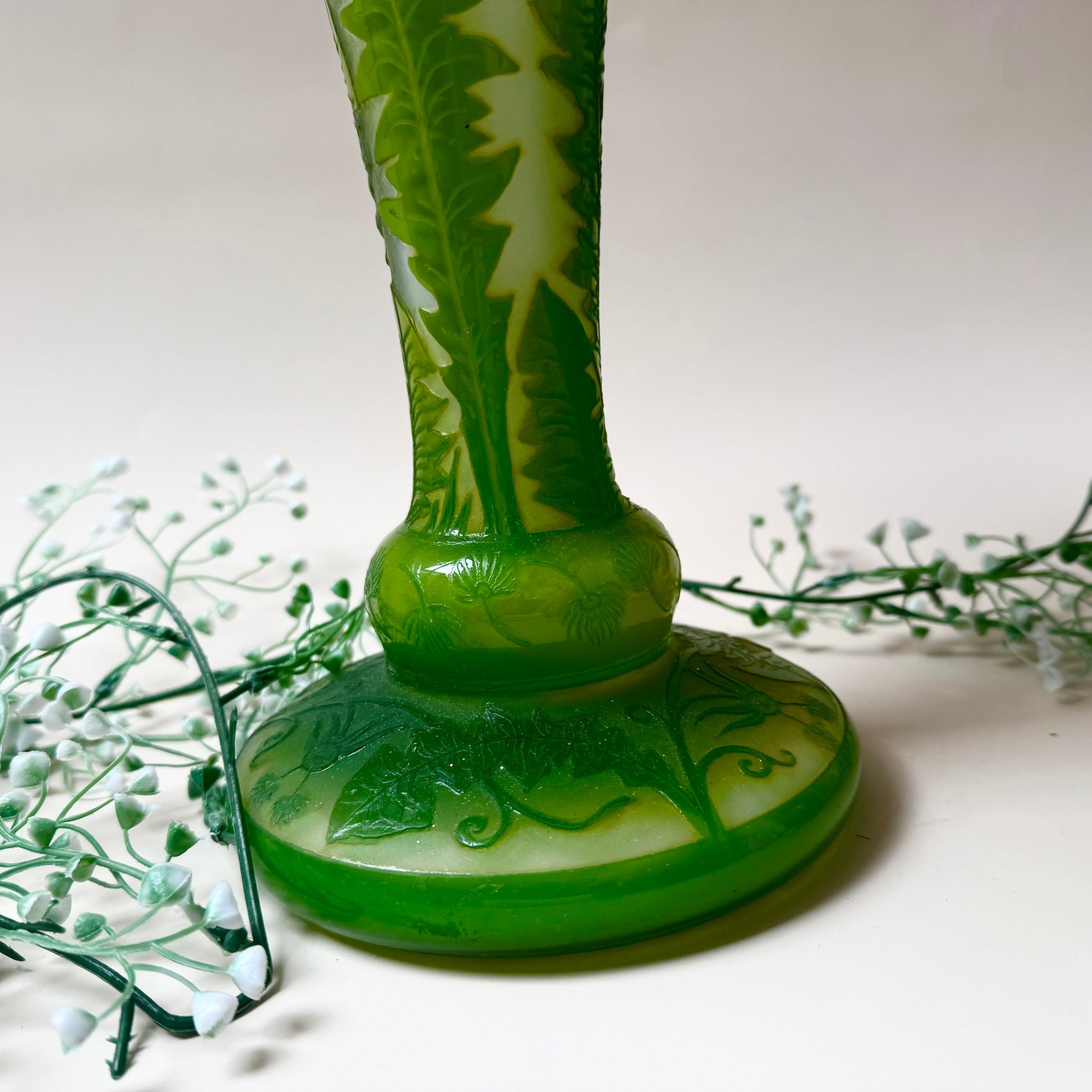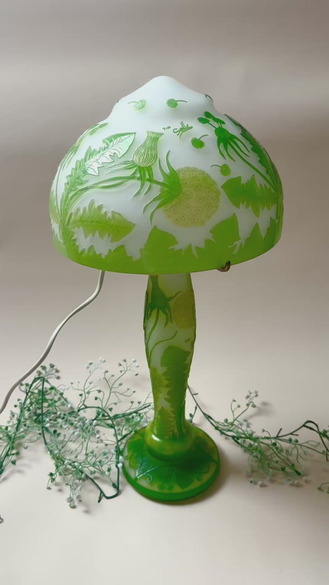 Du bist leidenschaftlicher Sammler einzigartiger Antiquitäten und Vintage Stücke? Dann ist diese Tischlampe im Gallé Stil genau das Richtige für dich! Perfekt um deinem Zuhause einen Hauch Jugendstil zu verleihen. Das Cameo-Glas in grün und weiß macht die Lampe zu einem einzigartigen Highlight in deiner Einrichtung. Also, worauf wartest du noch? Hol sie dir so lange du noch kannst!