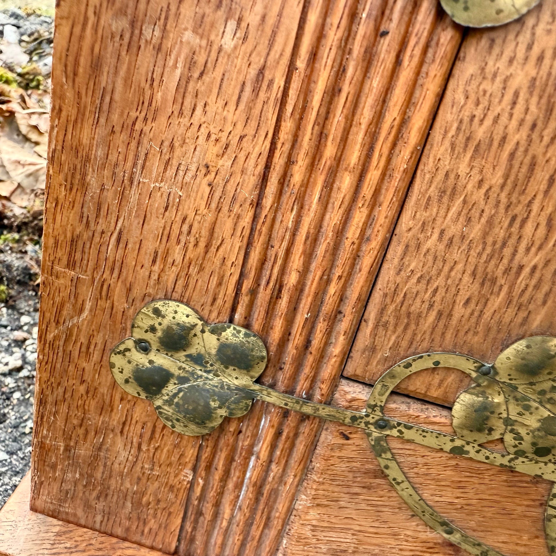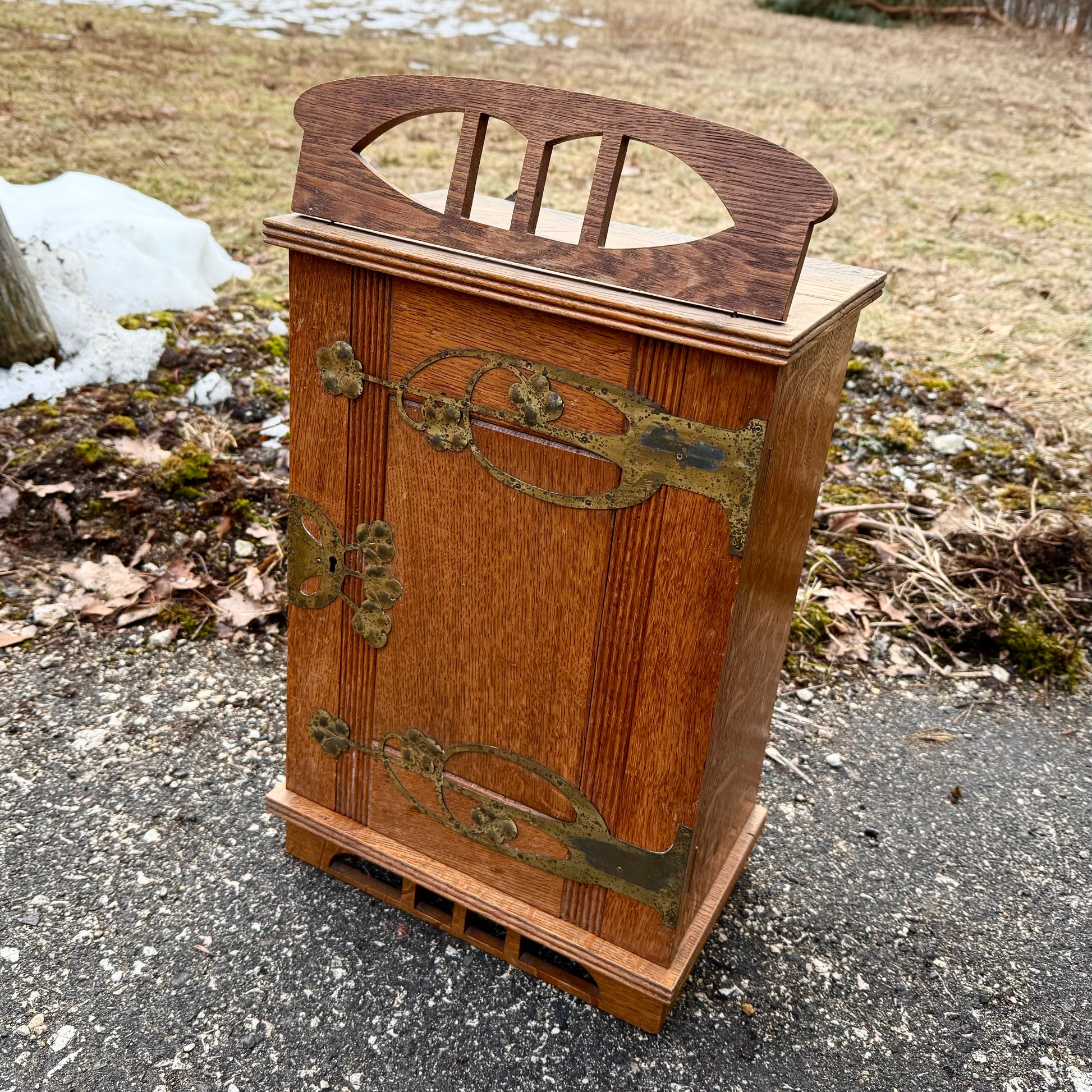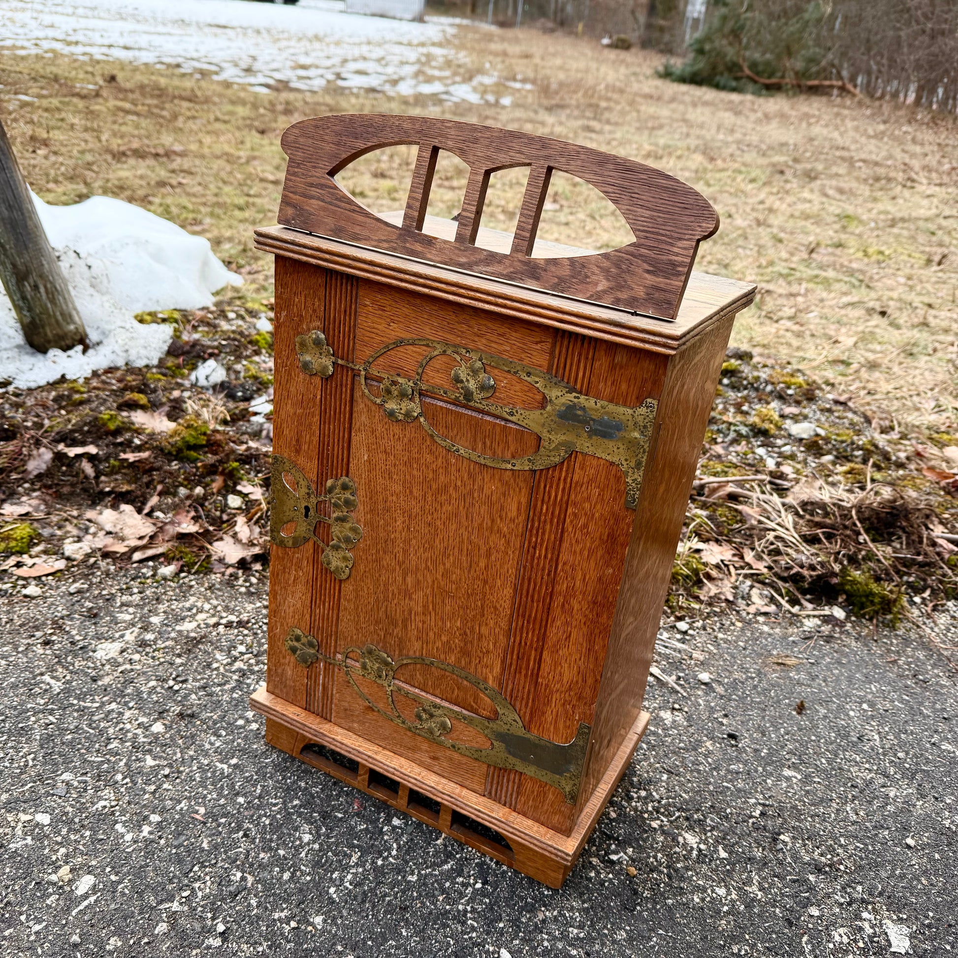 Du liebst die Einrichtung des Jugendstils und bist auf der Suche nach einem außergewöhnlichen Möbel für dein Zuhause? Dann ist dieses Schränkchen aus Holz genau das Richtige für dich! Das besondere Kleinmöbel mit Messing Blumen ist perfekt für dein Badezimmer, Büro oder auch als einzigartige Wanddeko. Also, worauf wartest du noch? Hol dir den Schrank so lange du noch kannst!