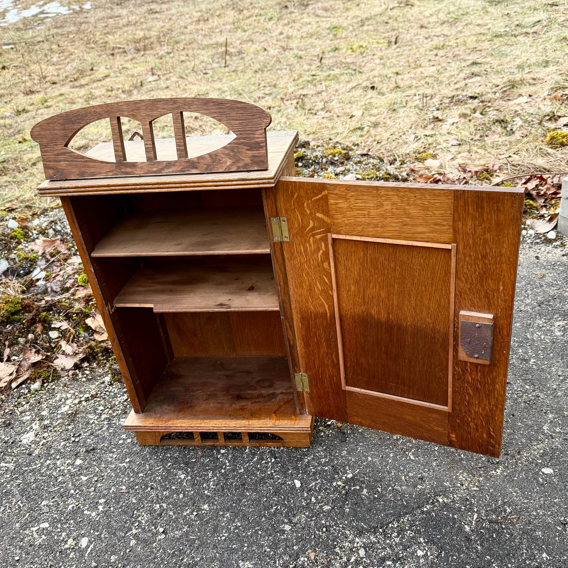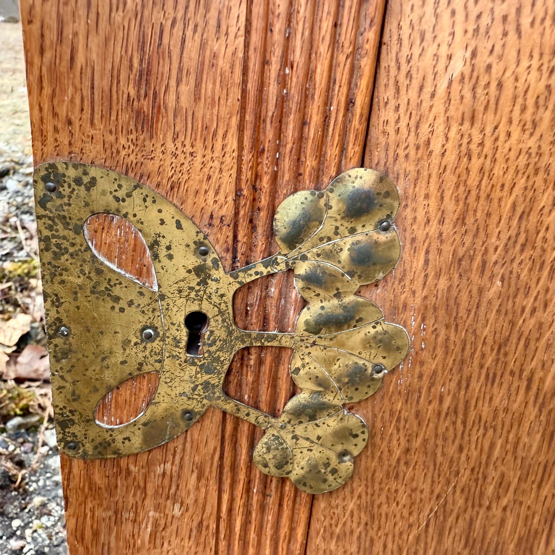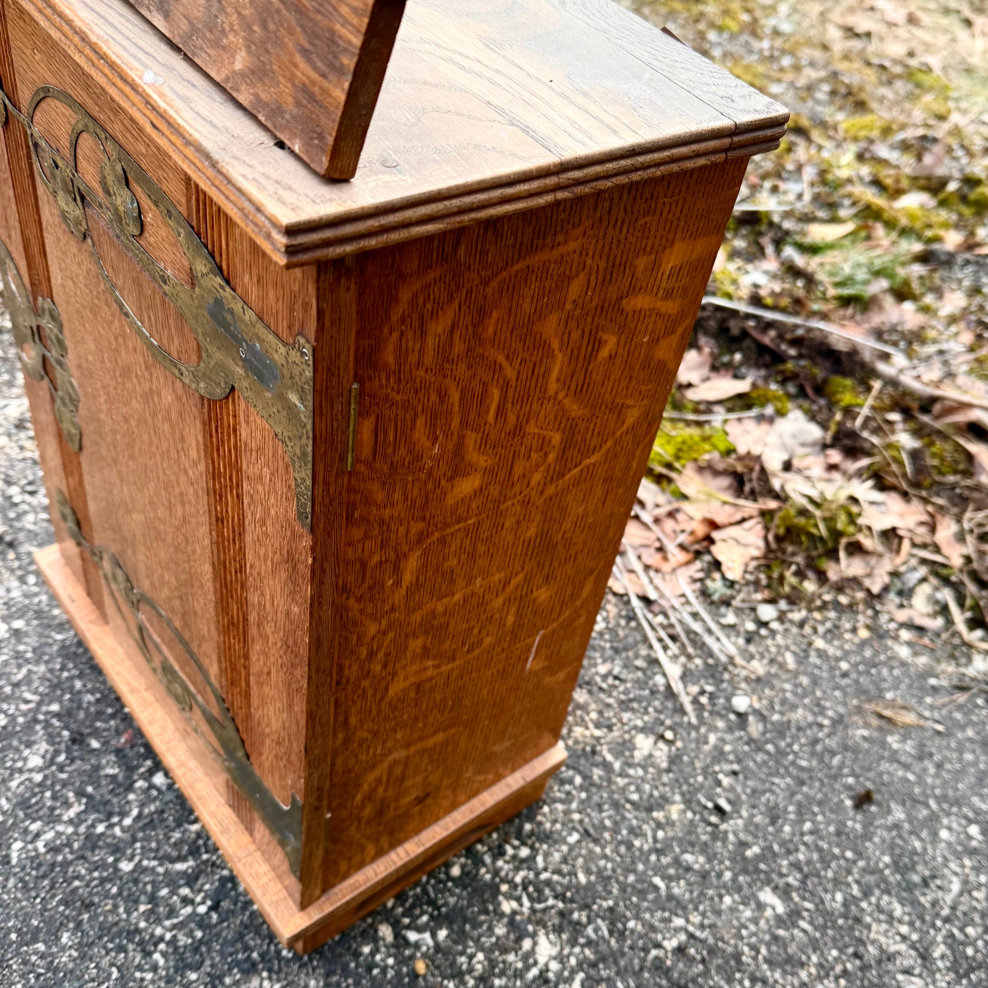 Du liebst die Einrichtung des Jugendstils und bist auf der Suche nach einem außergewöhnlichen Möbel für dein Zuhause? Dann ist dieses Schränkchen aus Holz genau das Richtige für dich! Das besondere Kleinmöbel mit Messing Blumen ist perfekt für dein Badezimmer, Büro oder auch als einzigartige Wanddeko. Also, worauf wartest du noch? Hol dir den Schrank so lange du noch kannst!