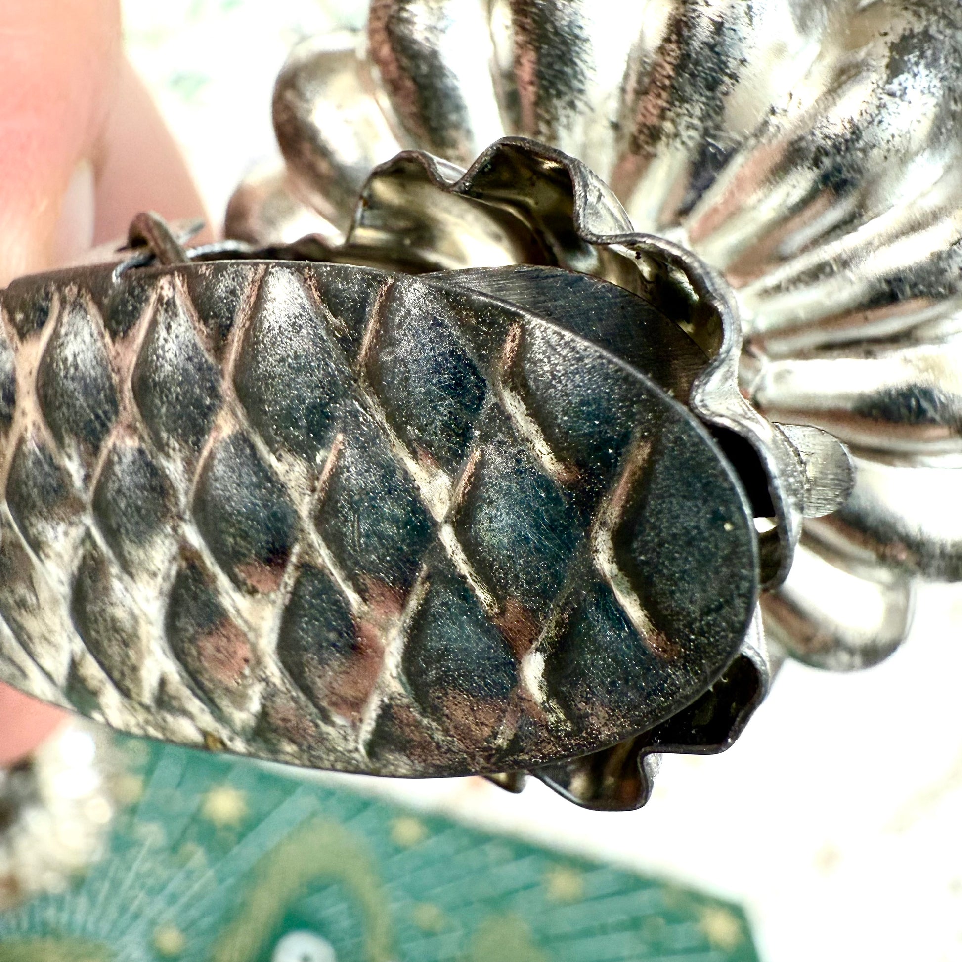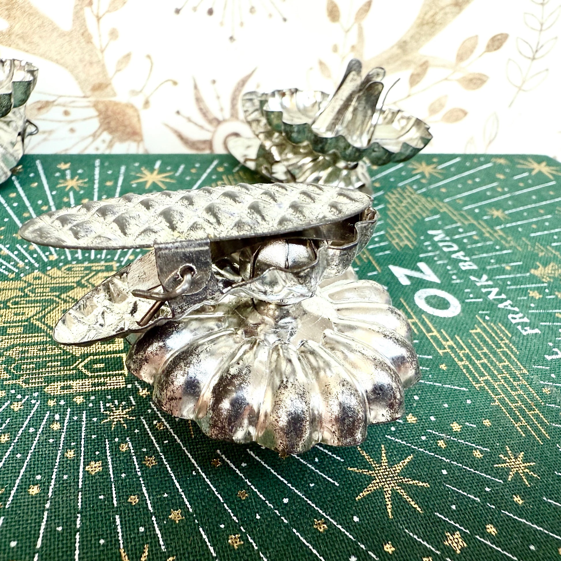 Du liebst handgemachte Unikate und einzigartige Vintage Stücke? Dann ist diese Weihnachtsdeko in silber genau das Richtige für dich! Die klassischen Kerzenhalter für deinen Weihnachtsbaum sorgen sofort für Nostalgie und Erinnerungen. Also, worauf wartest du? Sichere dir diesen besonderen Christbaumschmuck solange er noch da ist!