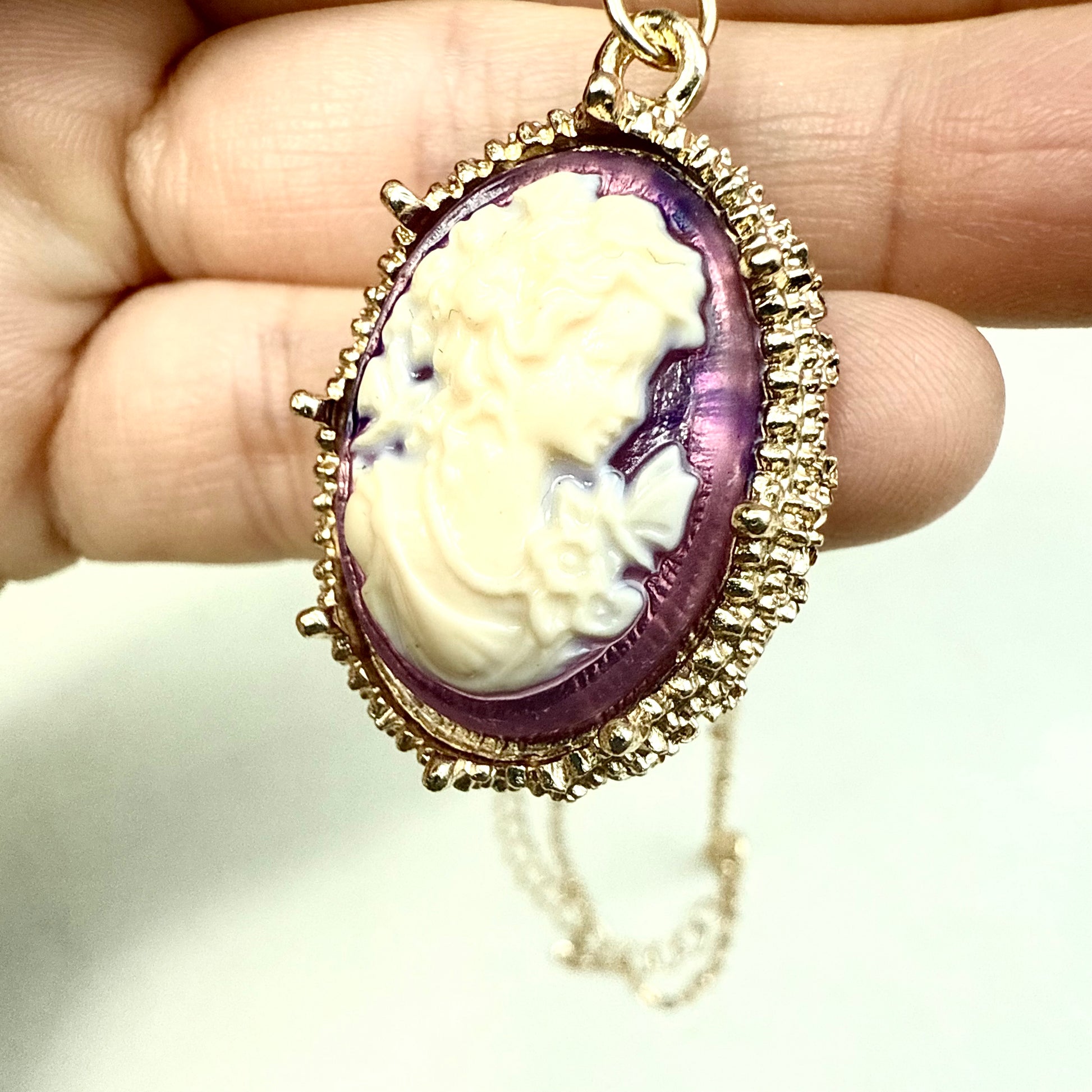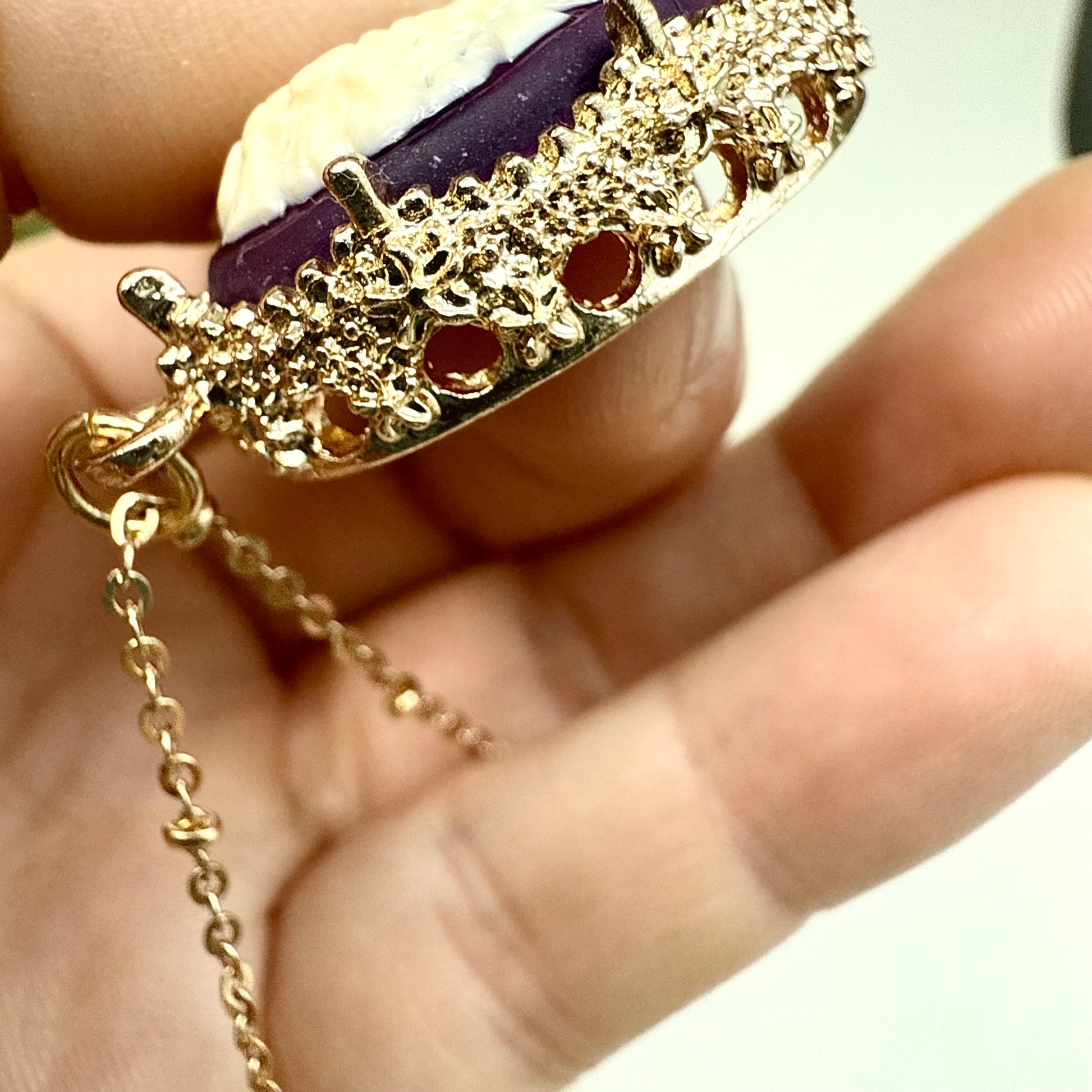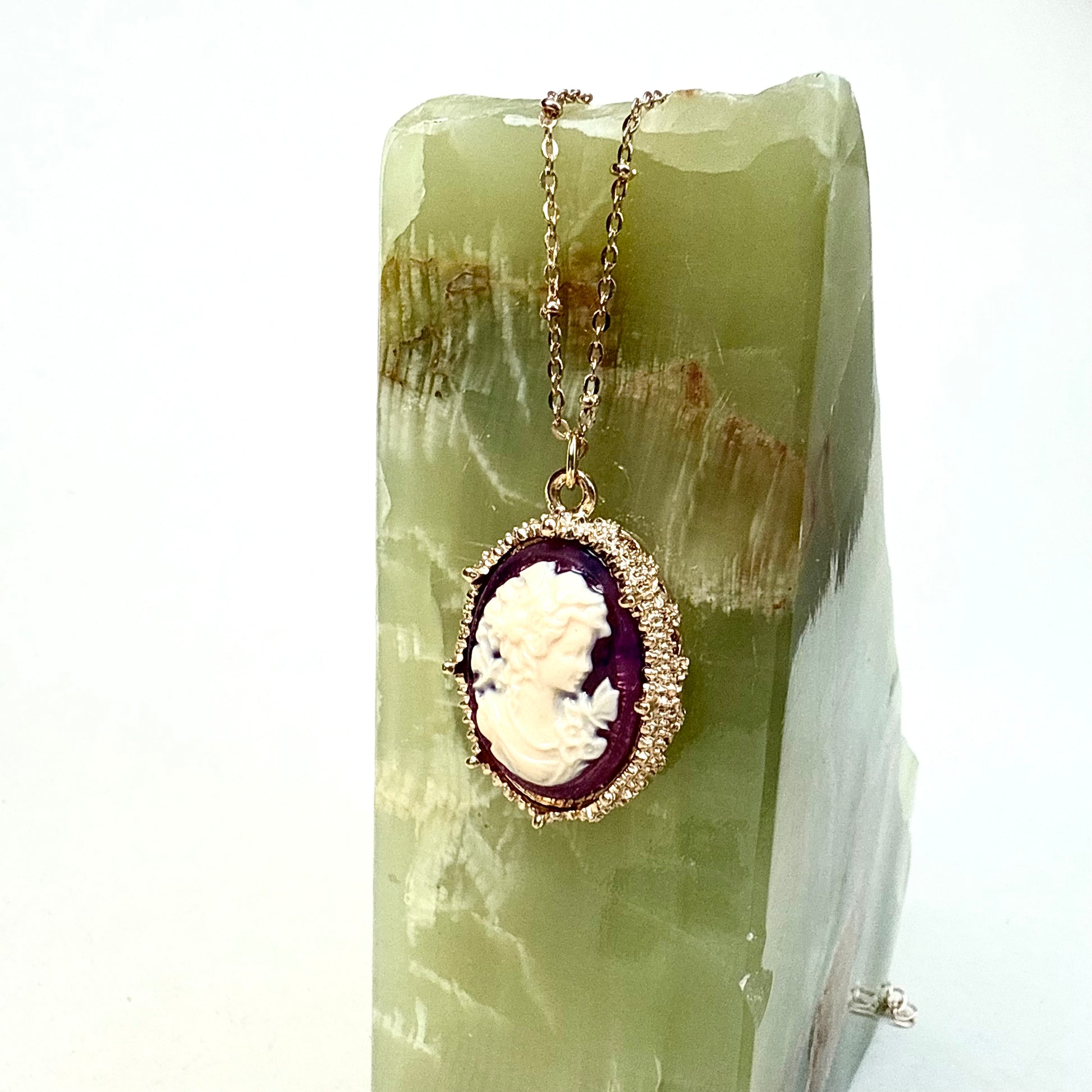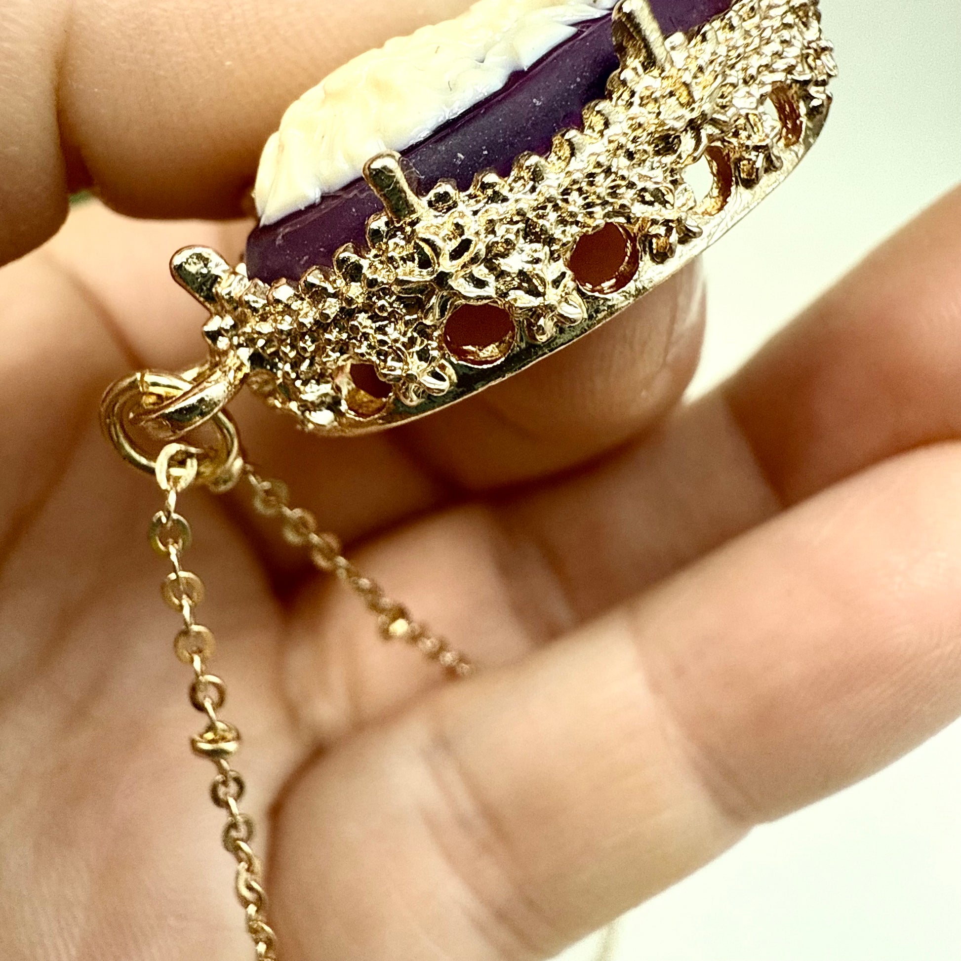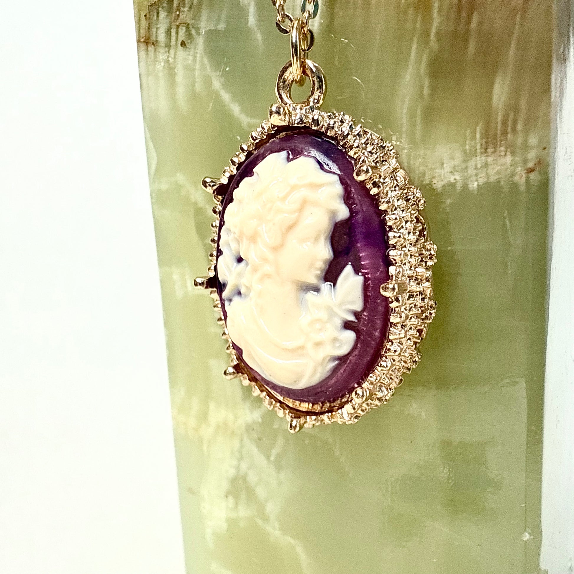 Du magst besonderen und einzigartigen Vintage Schmuck? Dann ist diese goldene Kette mit einem Gemme Anhänger genau das Richtige für dich! Die Halskette mit Kamee ist ein wahrer Hingucker und ein perfektes Accessoire für sowohl schlichte als auch extravagante Outfits. Also, worauf wartest du noch? Hol sie dir so lange du noch kannst!