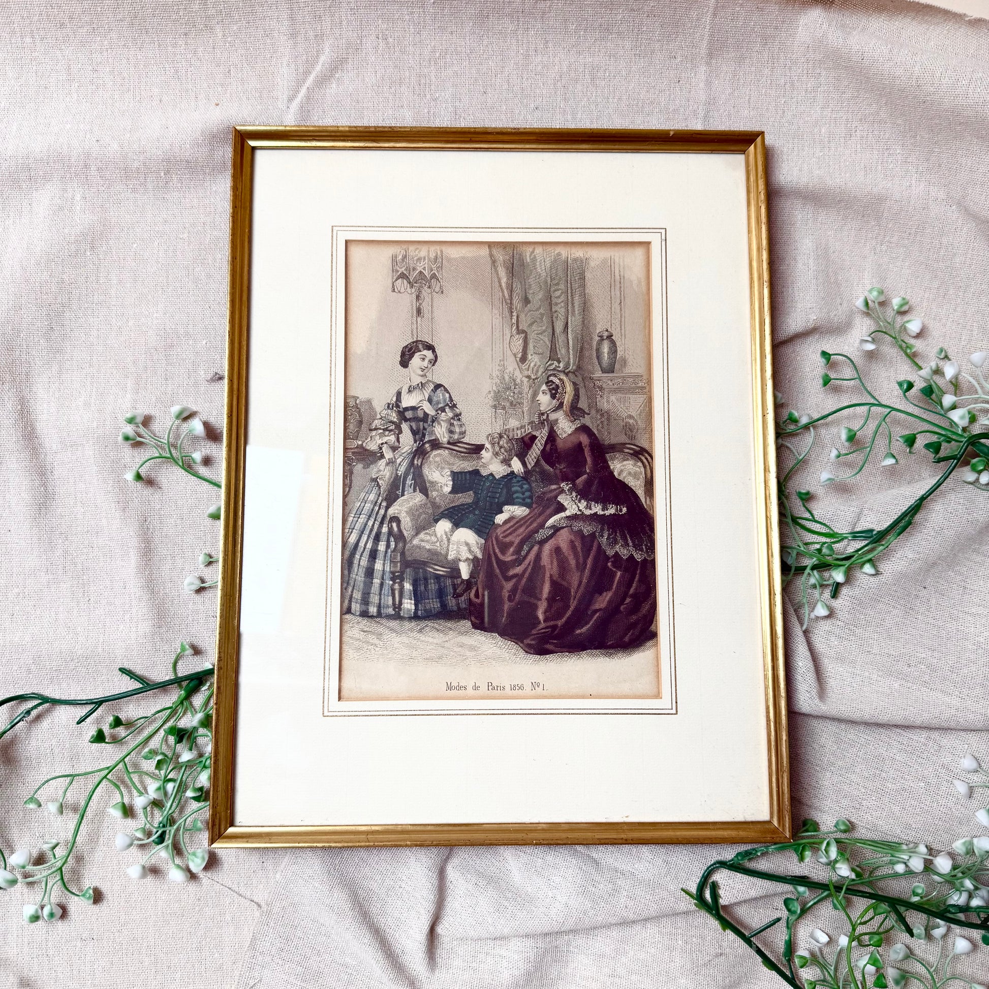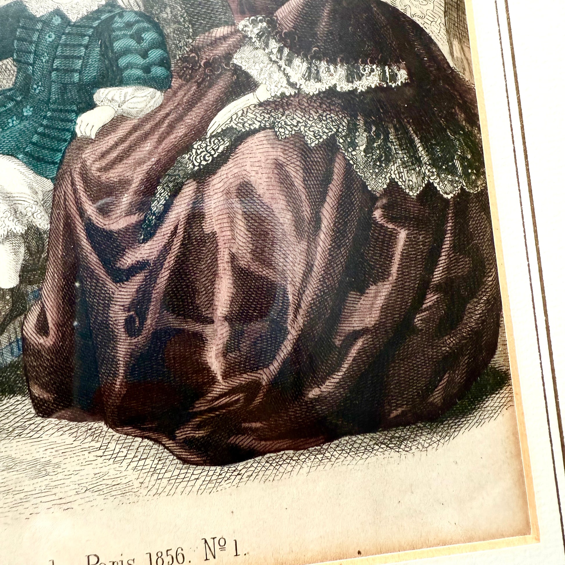 Gerahmte Mode Lithografie 1856