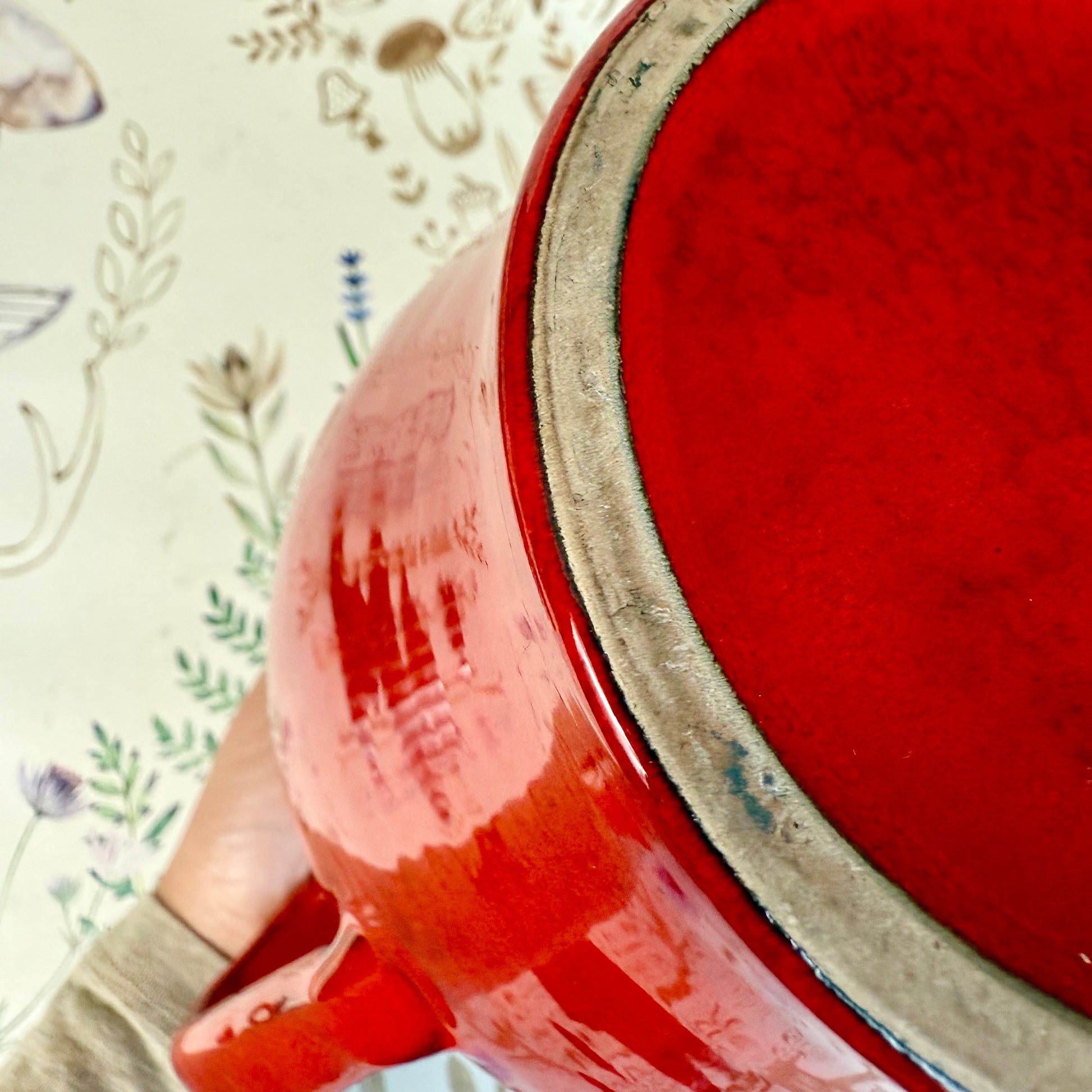 Du bist leidenschaftlicher Sammler antiker Unikate und wertvoller Vintage-Fundstücke? Dann ist diese Krug in kräftigem Rot genau das Richtige für dich! Die handgemachte Keramik mit organisch geformtem Henkel ist ein echter Blickfang und ein optisches Highlight, das Sammlerherzen höher schlagen lässt. Das Kunstkeramik ist ein außergewöhnliches Ausstellungsstück für die Vitrine oder auch eine perfekte Dekoration in Küche und Esszimmer, sowie für das Servieren von Getränken. Also, worauf wartest du noch? Hol dir den Krug so lange du noch kannst!