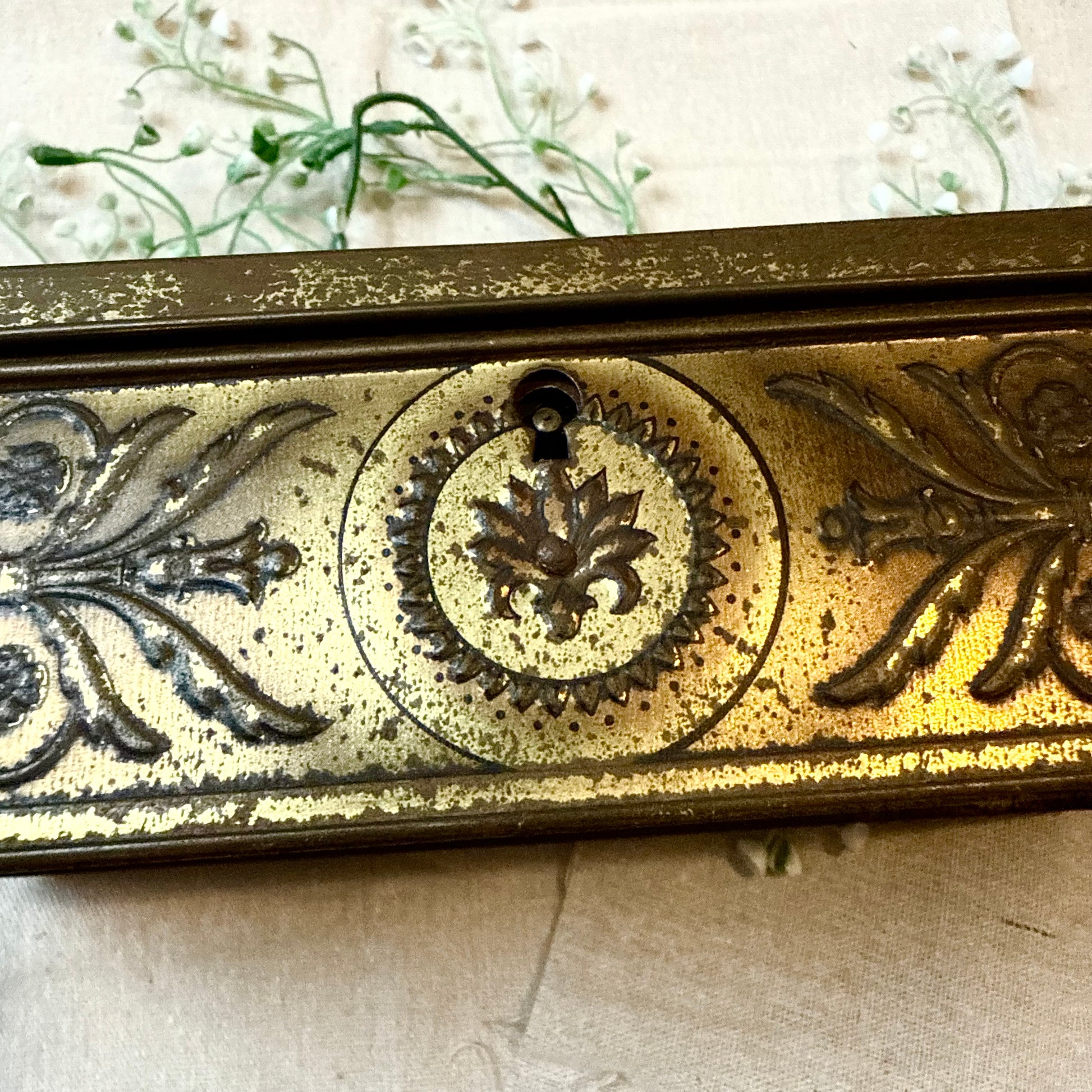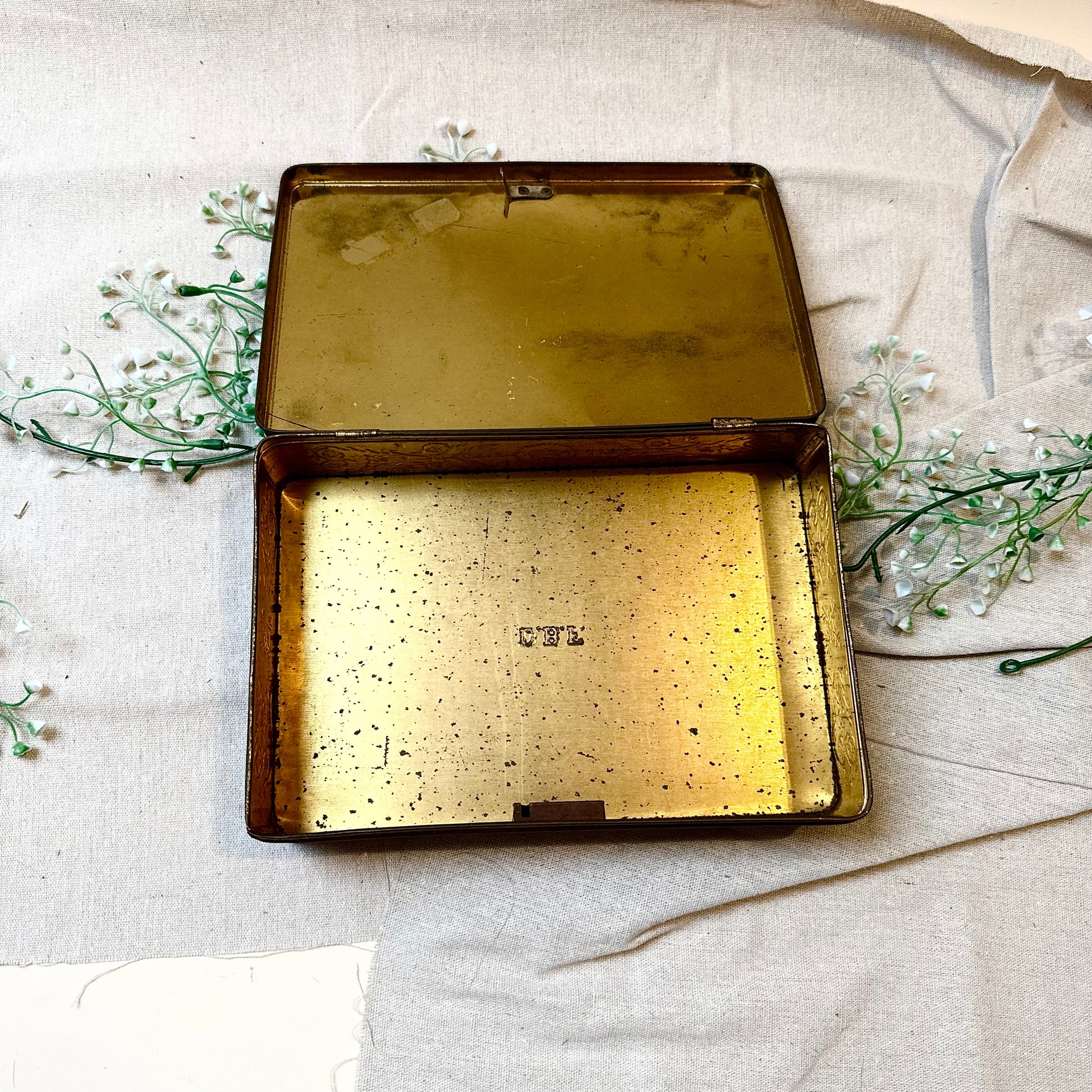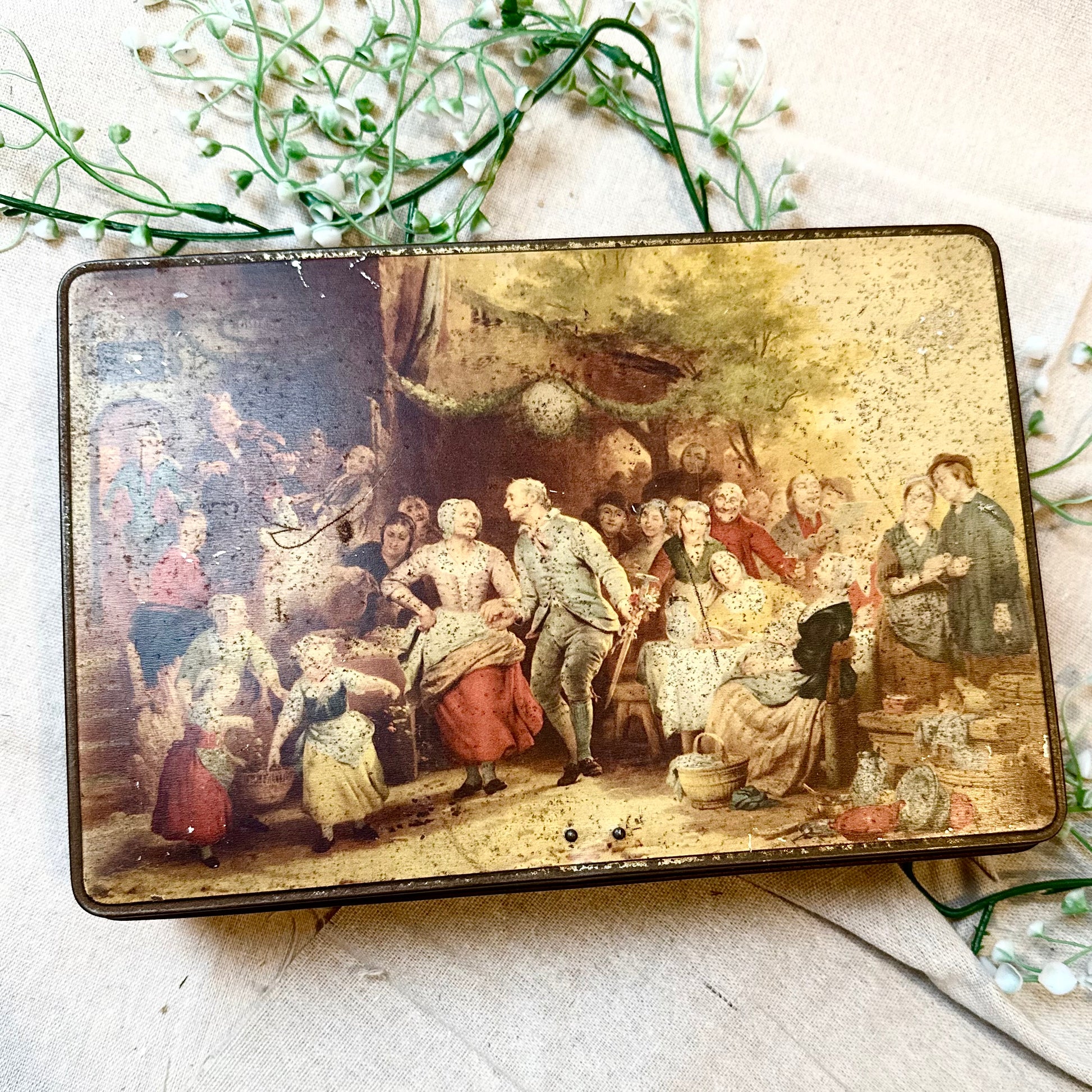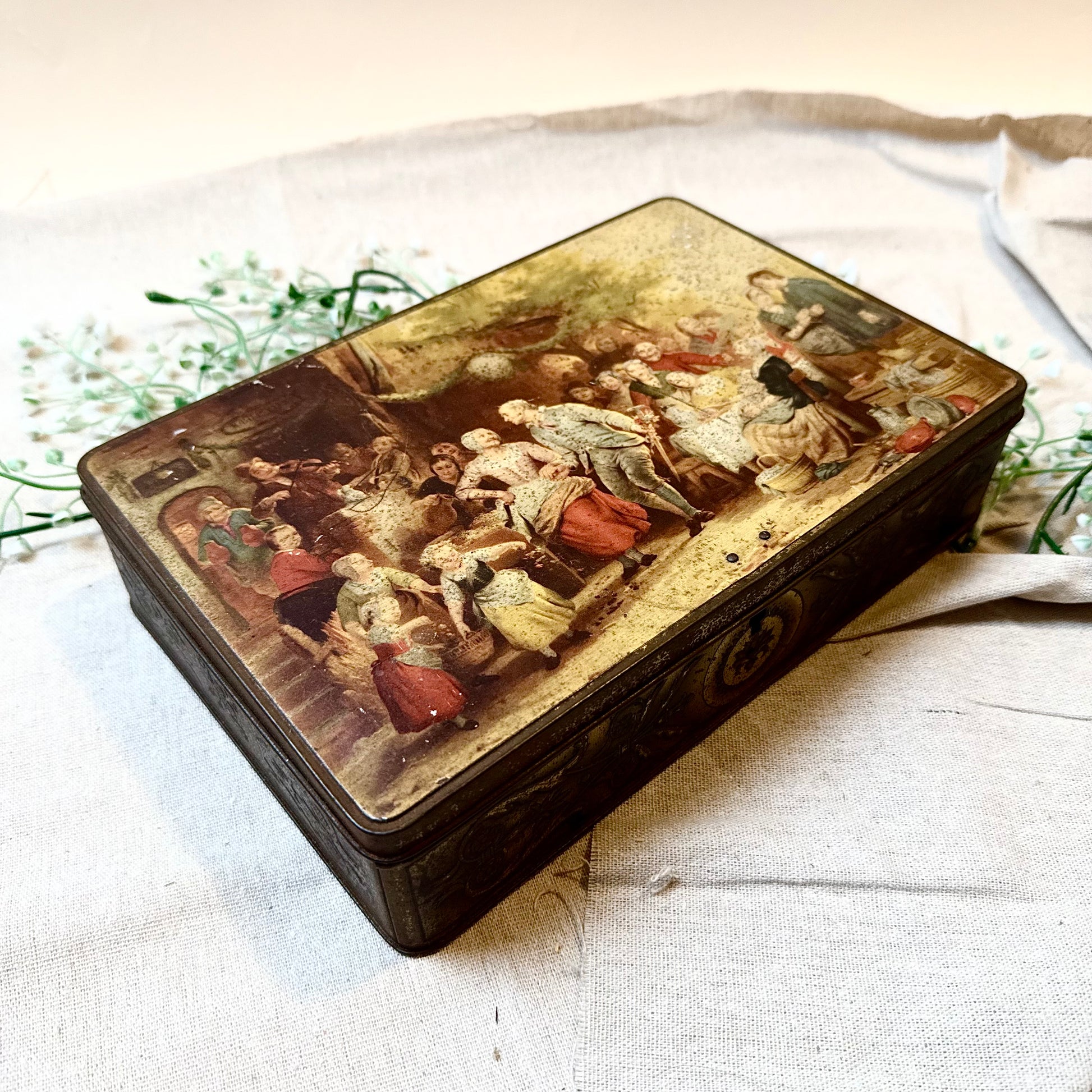 Du bist leidenschaftlicher Sammler einzigartiger Wohndeko und wertvoller Vintage Fundstücke? Dann ist diese alte Blechdose mit prunkvollem Motiv in Biedermeier Stil genau das Richtige für dich! Die Box mit Schloss ist die perfekte Aufbewahrungsmöglichkeit für kleine Alltagsgegenstände, Krimskrams oder Tee. Also, worauf wartest du noch? Hol sie dir so lange du noch kannst!