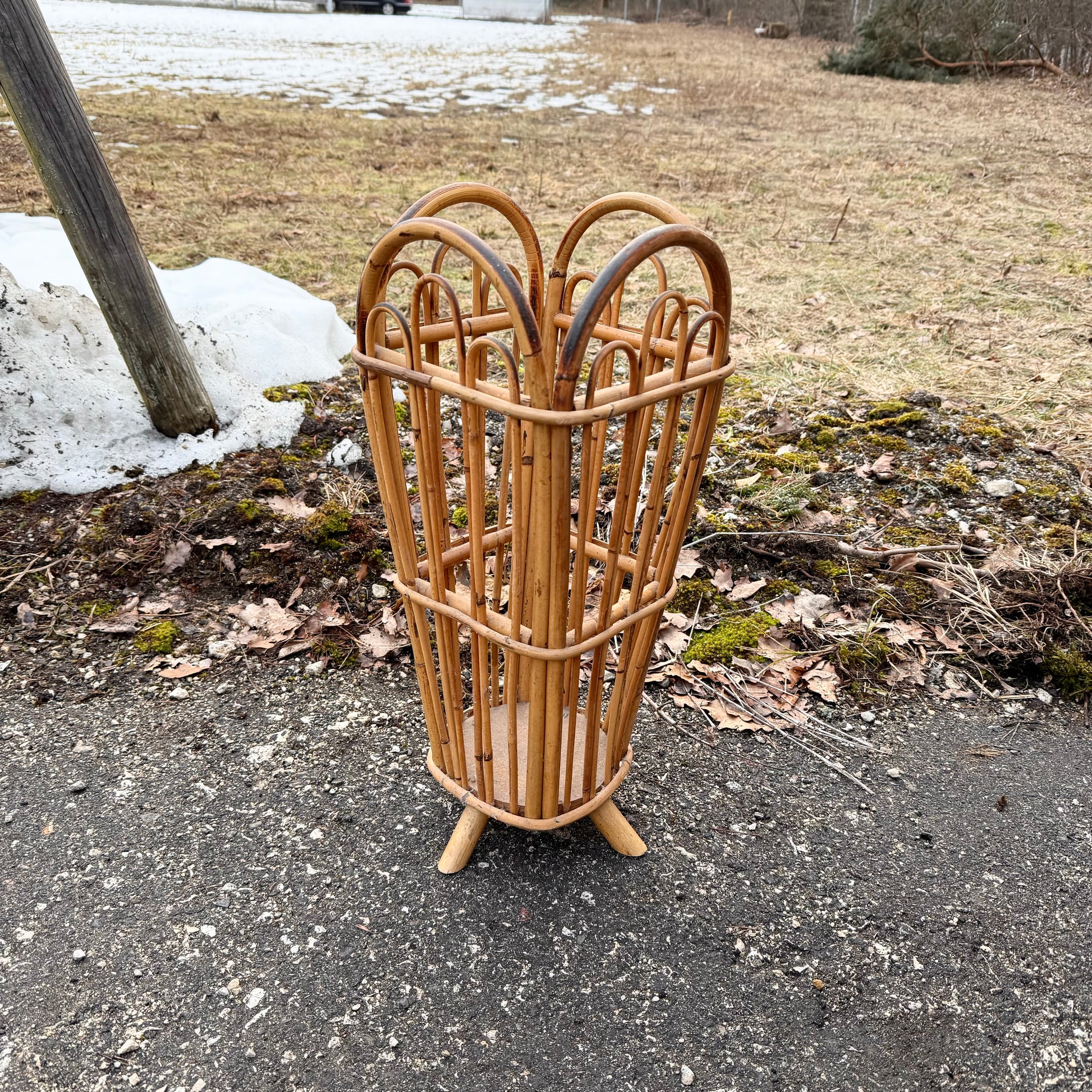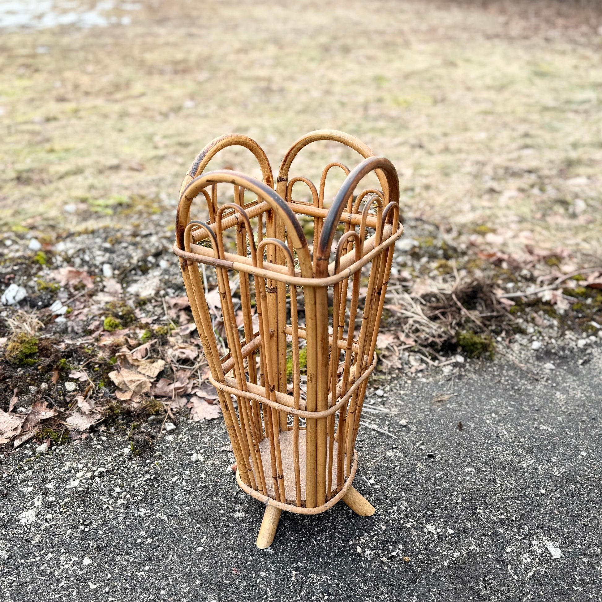 Du bist Liebhaber einzigartiger Mid Century Einrichtung und außergewöhnlicher Vintage Möbel? Dann ist dieser Bambus Schirmständer genau das Richtige für dich! Das Kleinmöbel ist perfekt für deinen Flur oder auch für die Aufbewahrung von Decken, Geschenkpapierrollen uvm. Also, worauf wartest du noch? Hol dir die Wohndeko so lange du noch kannst!