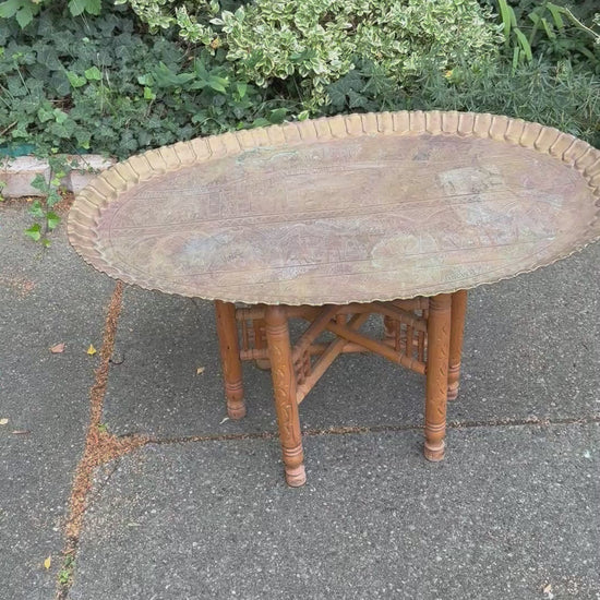Du willst in deinem Zuhause für eine orientalische Atmosphäre sorgen? Dann ist dieser ägyptische Beistelltisch genau das Richtige für dich! Der Tabletttisch aus Holz und Messing weist unzählige ägyptische Motive auf, die ihn zu einem absoluten Highlight machen. Also, worauf wartest du noch? Hol dir den Tisch so lange du noch kannst!