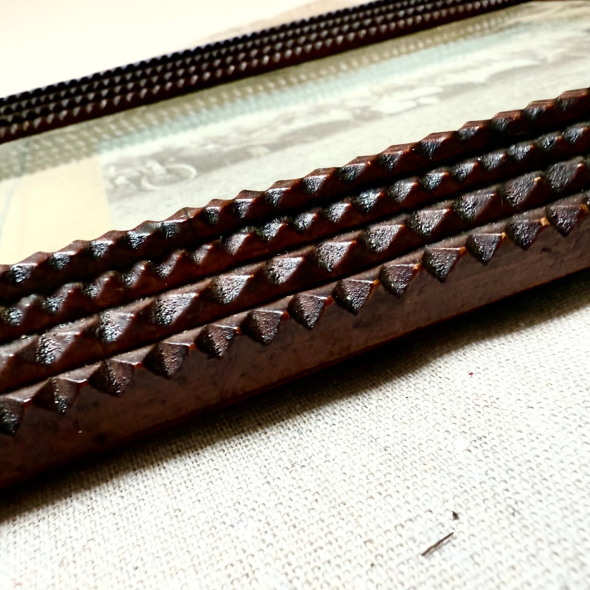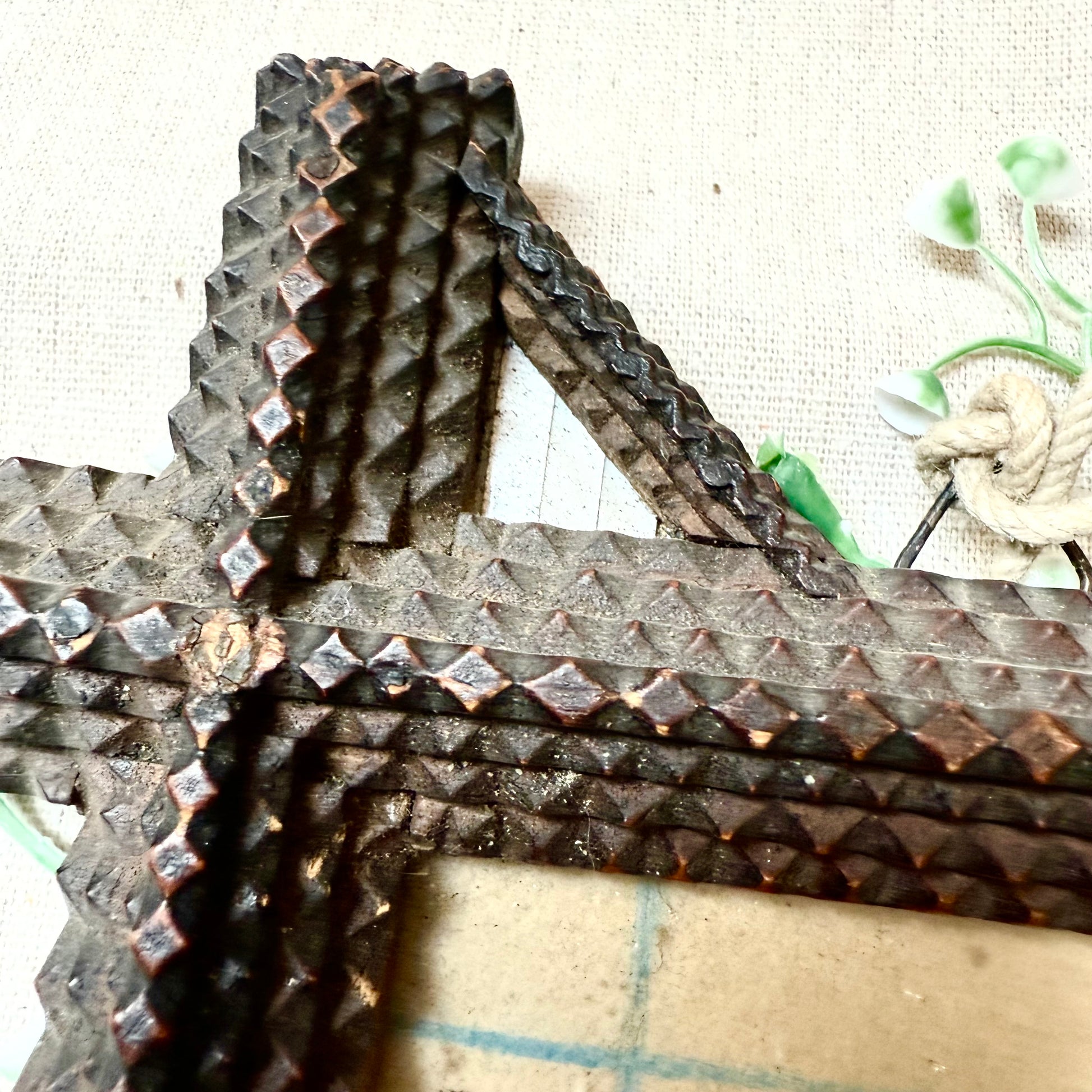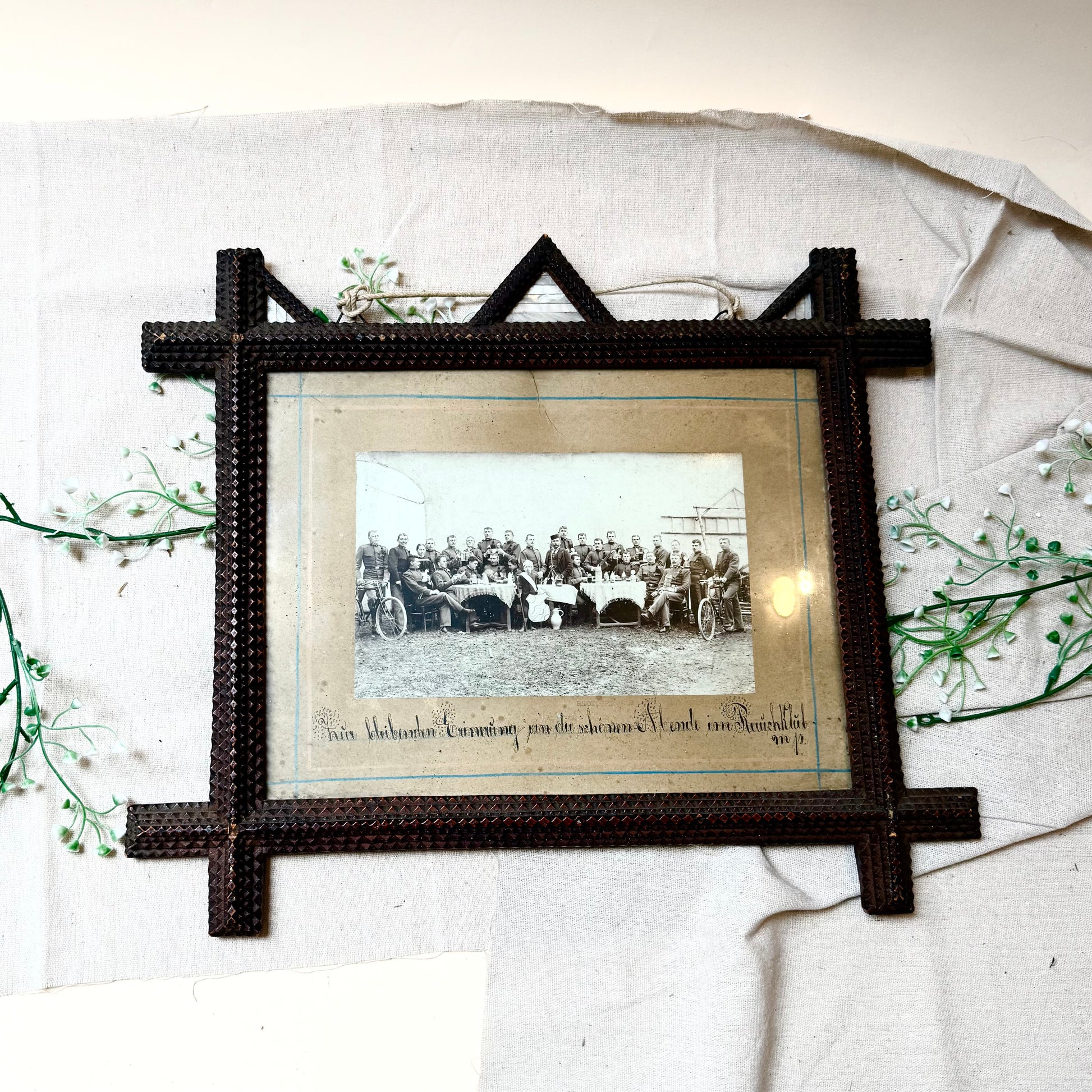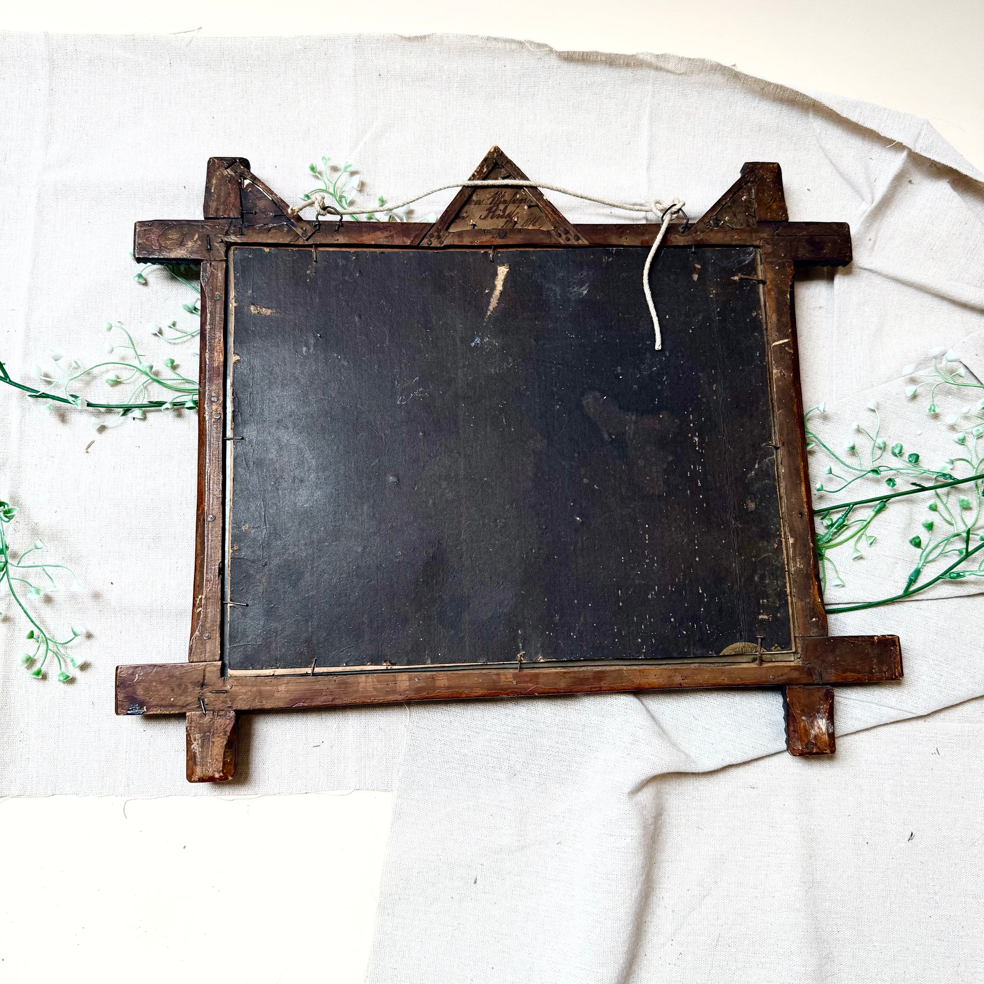 Du bist leidenschaftlicher Sammler antiker Tramp Art und besonderer Vintage Stücke? Dann ist dieser originale Tramp Art Bilderrahmen mit Perlmutt genau das Richtige für dich! Der handgemachte Holzrahmen mit seinen zahlreichen Schnitzereien ist ein absolutes Highlight und Sammlerstück. Also, worauf wartest du noch? Hol dir die Antiquität so lange du noch kannst!