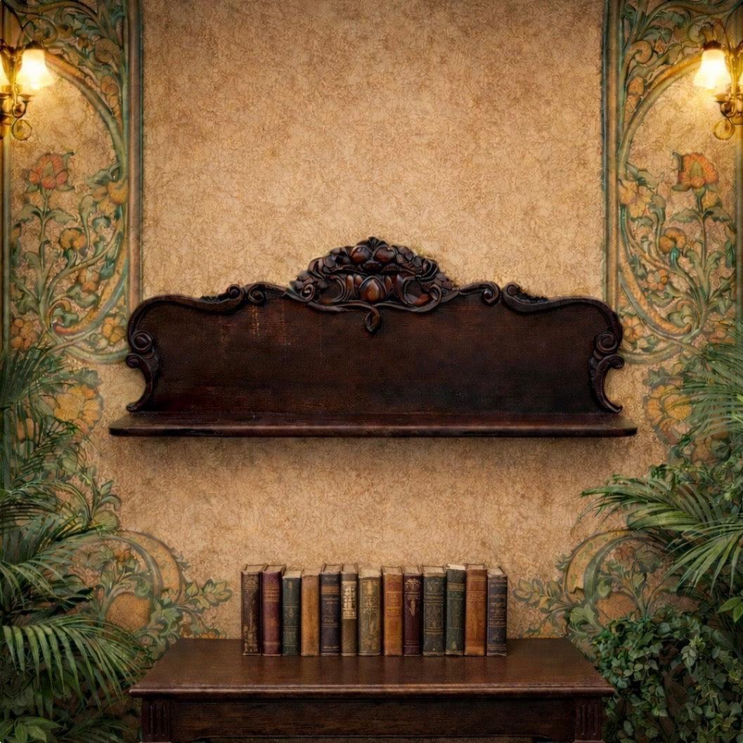Du liebst die Einrichtung des Jugendstils und bist auf der Suche nach einem außergewöhnlichen Möbel für dein Zuhause? Dann ist dieses Regal aus Holz genau das Richtige für dich! Das besondere Kleinmöbel mit Blumen Schnörkel ist perfekt für dein Wohnzimmer oder Büro. Also, worauf wartest du noch? Hol dir das Wandregal so lange du noch kannst!